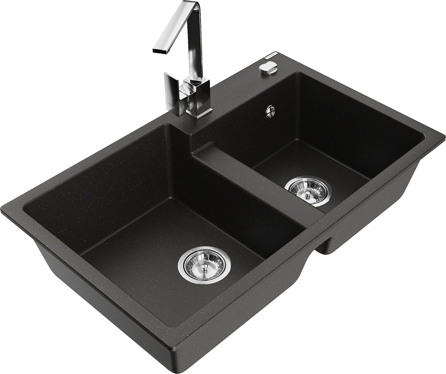 Mexen Tomas lavello in granito a 2 vasche con miscelatore cucina Rita, nero/oro metallizzato - 6516-75-670300-00