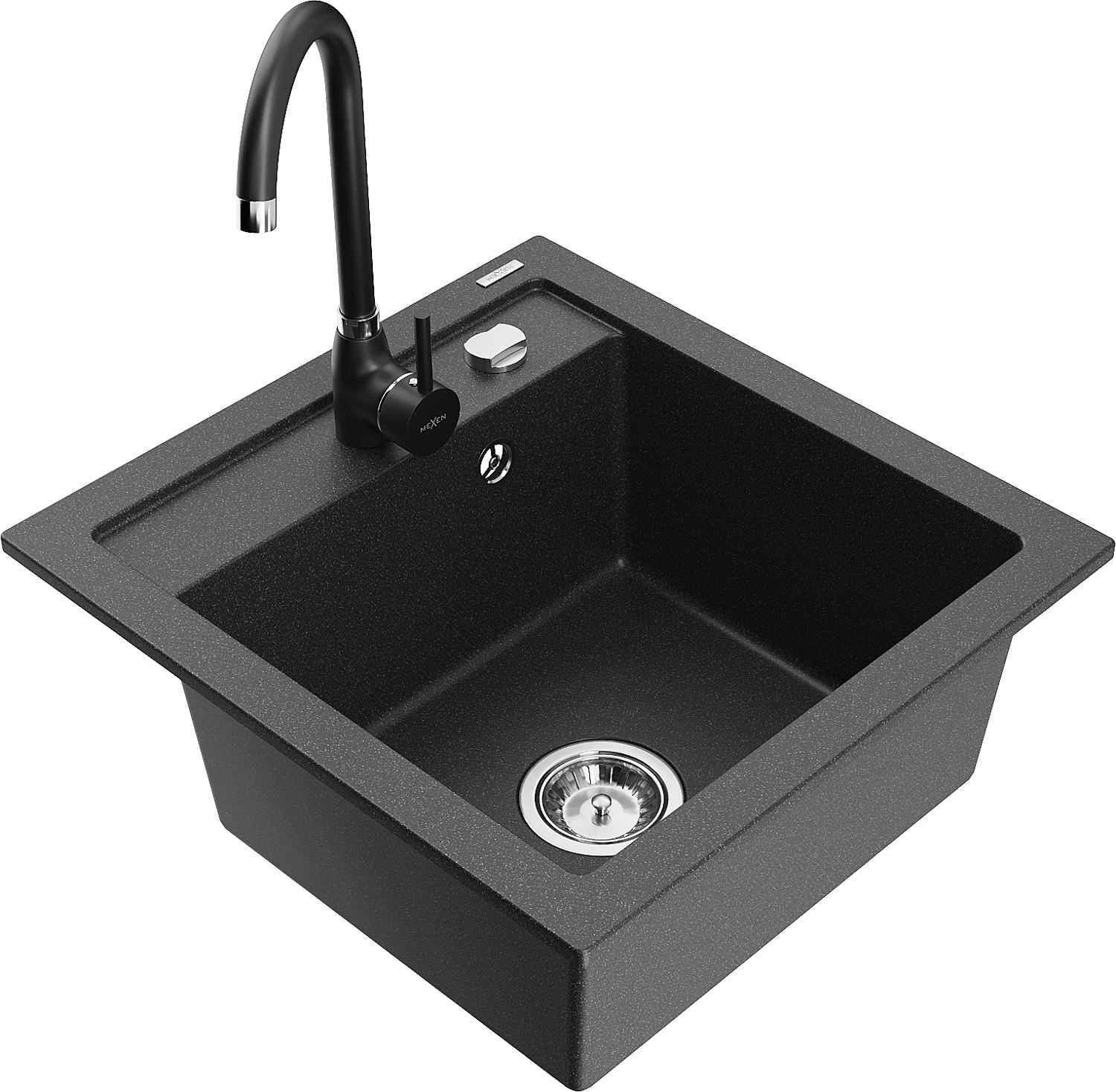 Mexen Vito lavello in granito 1-vasca con miscelatore cucina Telma, nero maculato - 6503-76-670200-70
