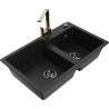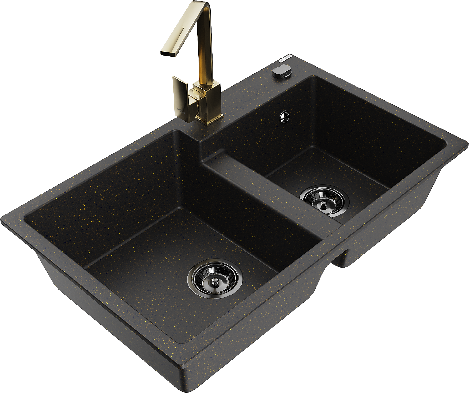 Mexen Tomas lavello da cucina in granito a 2 vasche con miscelatore Rita, nero/oro metallizzato - 6516-75-670300-50-B