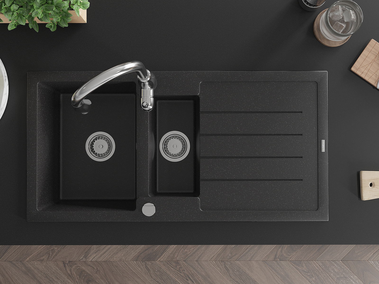 La scelta di un lavello con sgocciolatoio è una soluzione pratica che consente di riporre piatti, verdure e frutta lavati. Lo sgocciolatoio facilita la cucina quotidiana e aiuta a mantenere l'ordine in cucina.