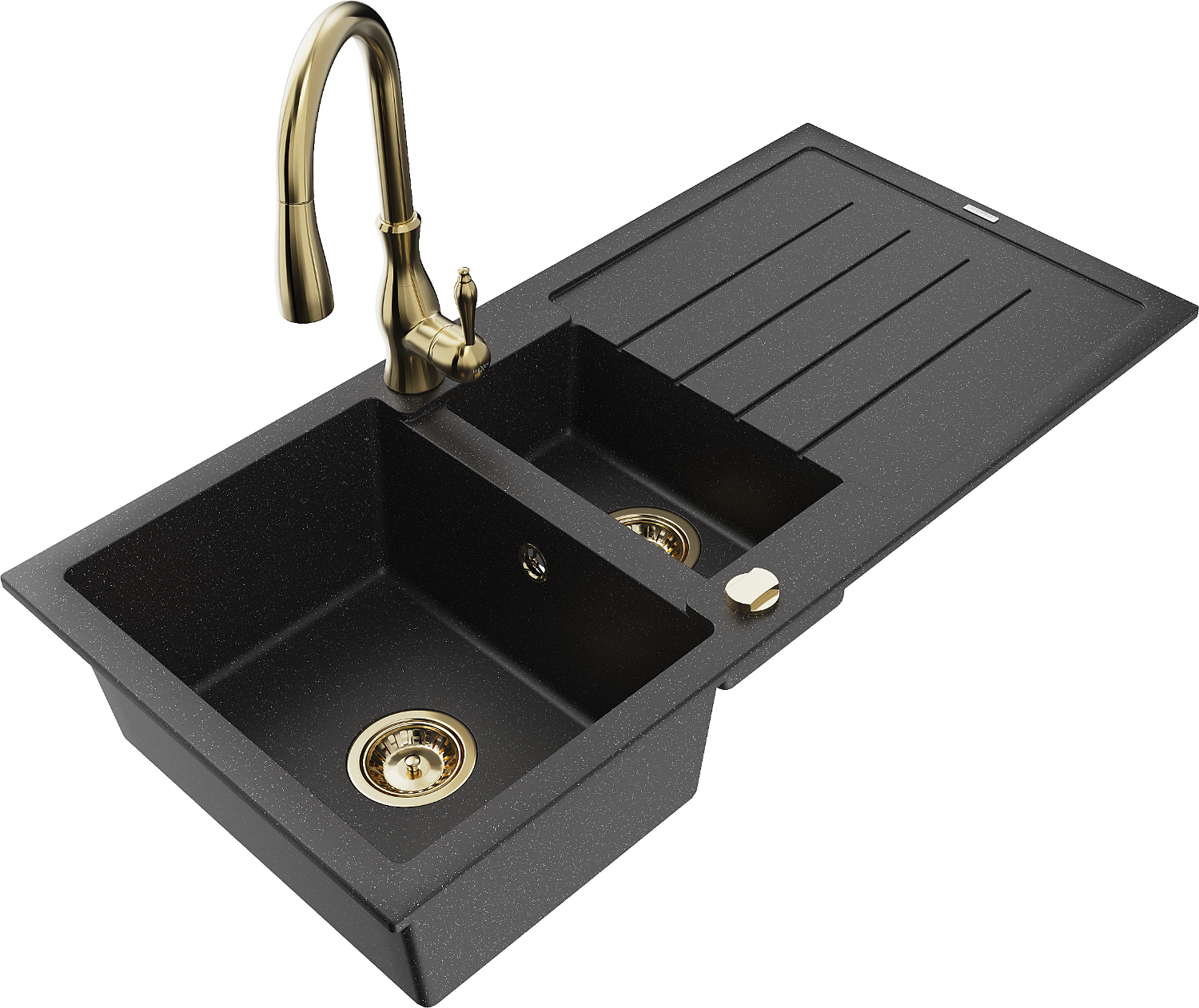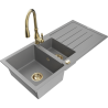 Mexen Andres lavello in granito 1,5 vasca con sgocciolatoio e rubinetto da cucina Savita, nero/argento - 6515-73-672601-50