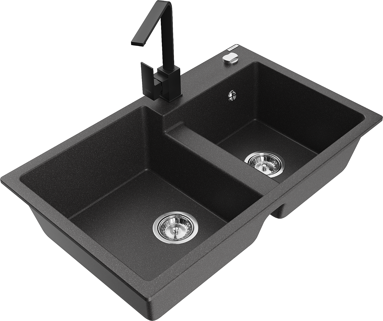 Mexen Tomas lavello da cucina in granito a 2 vasche con miscelatore Rita, nero maculato - 6516-76-670300-70