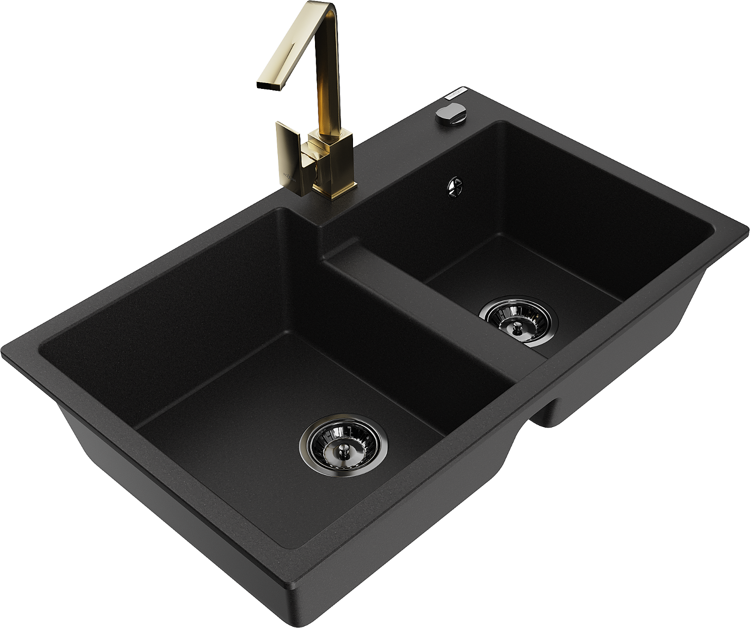 Mexen Tomas lavello in granito a 2 vasche con miscelatore da cucina Rita, nero - 6516-77-670300-50-B