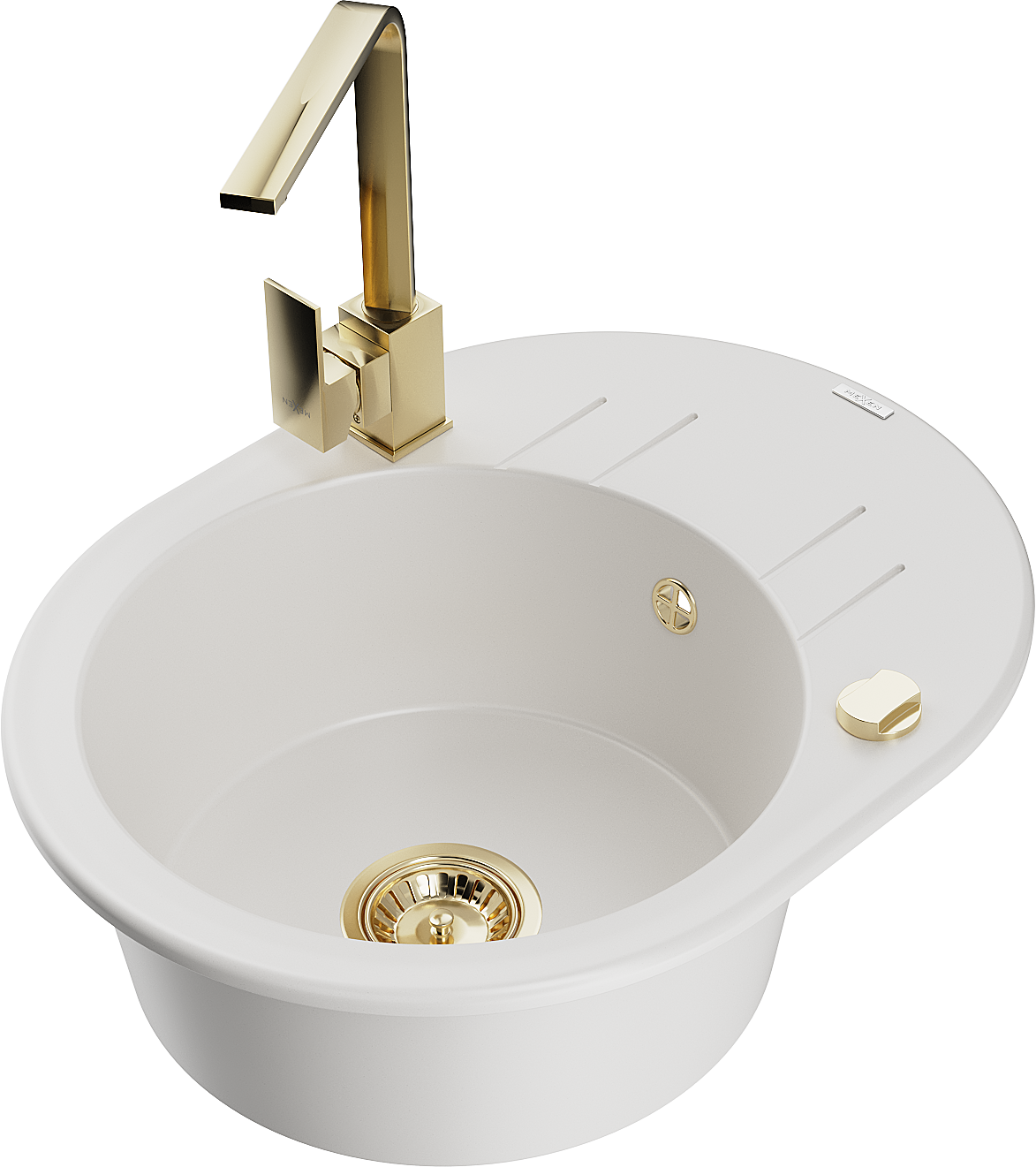 Mexen Kevin lavello in granito 1-vasca con scolapiatti e miscelatore cucina Rita, bianco - 6517-20-670300-50