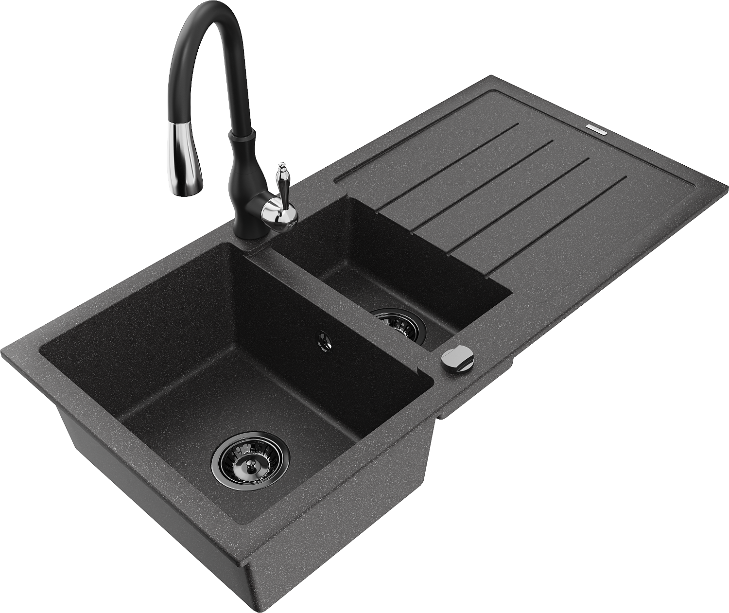Mexen Andres lavello in granito a 1,5 vasche con scolapiatti e rubinetto da cucina Savita, nero puntinato - 6515-76-672601-70-B