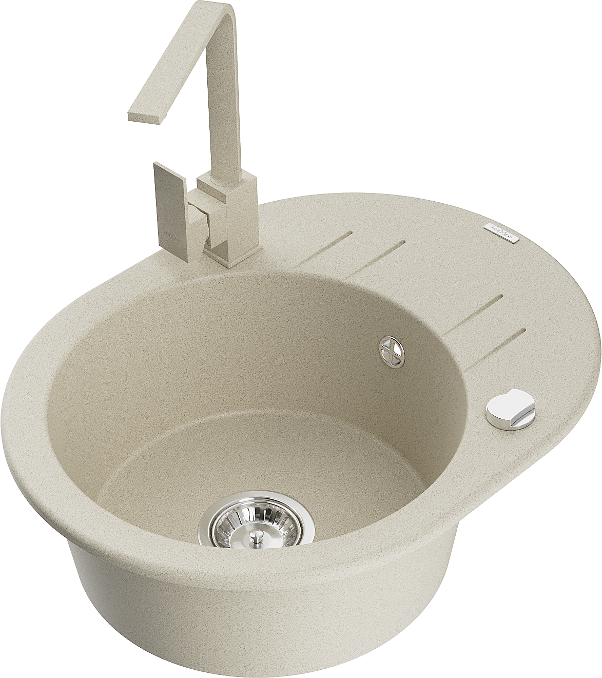 Mexen Kevin lavello in granito 1-vasca con scolapiatti e rubinetto da cucina Rita, beige - 6517-69-670300-69