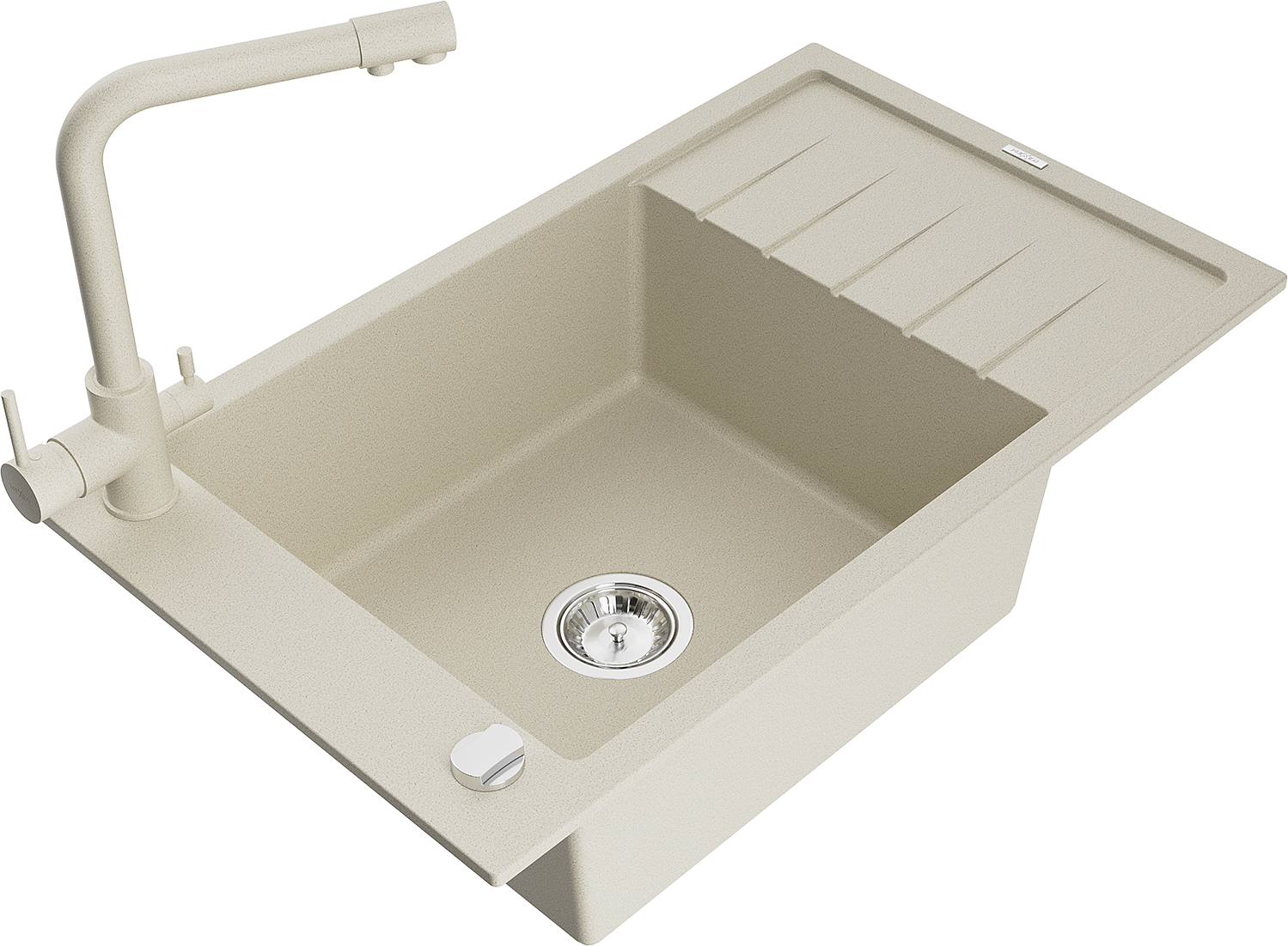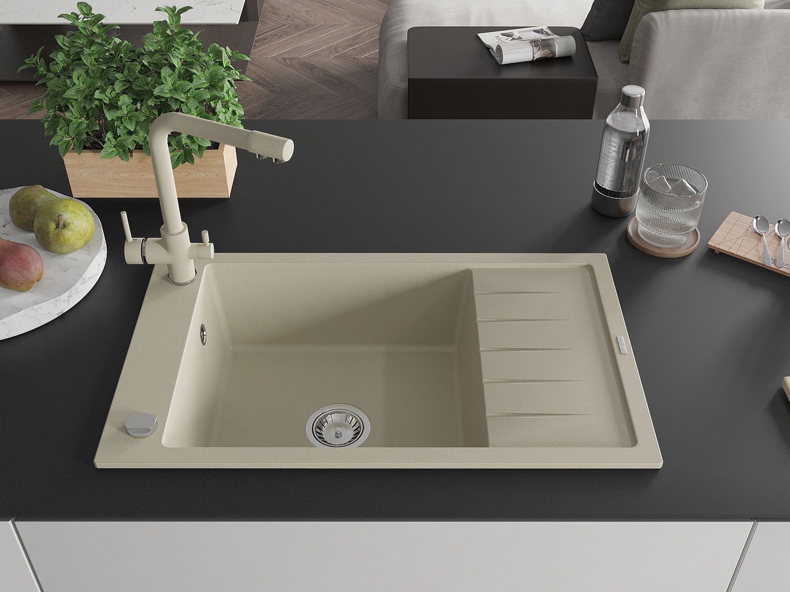 Mexen Elias lavello in granito con 1 vasca e sgocciolatoio e rubinetto da cucina Duero, beige - 6511-69-671600-69