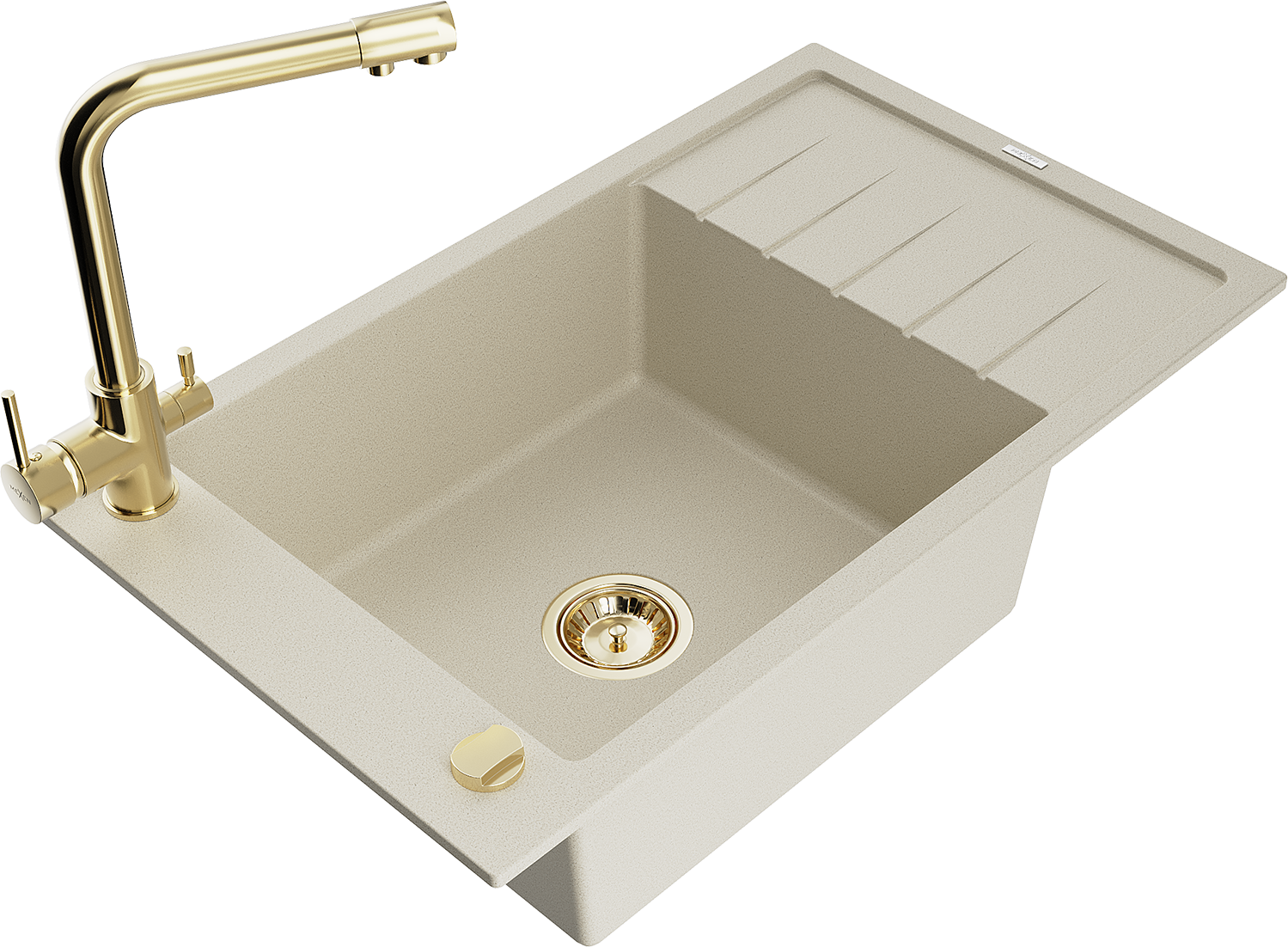 Mexen Elias lavello da cucina in granito a 1 vasca con scolapiatti e rubinetto Duero, beige - 6511-69-671600-50