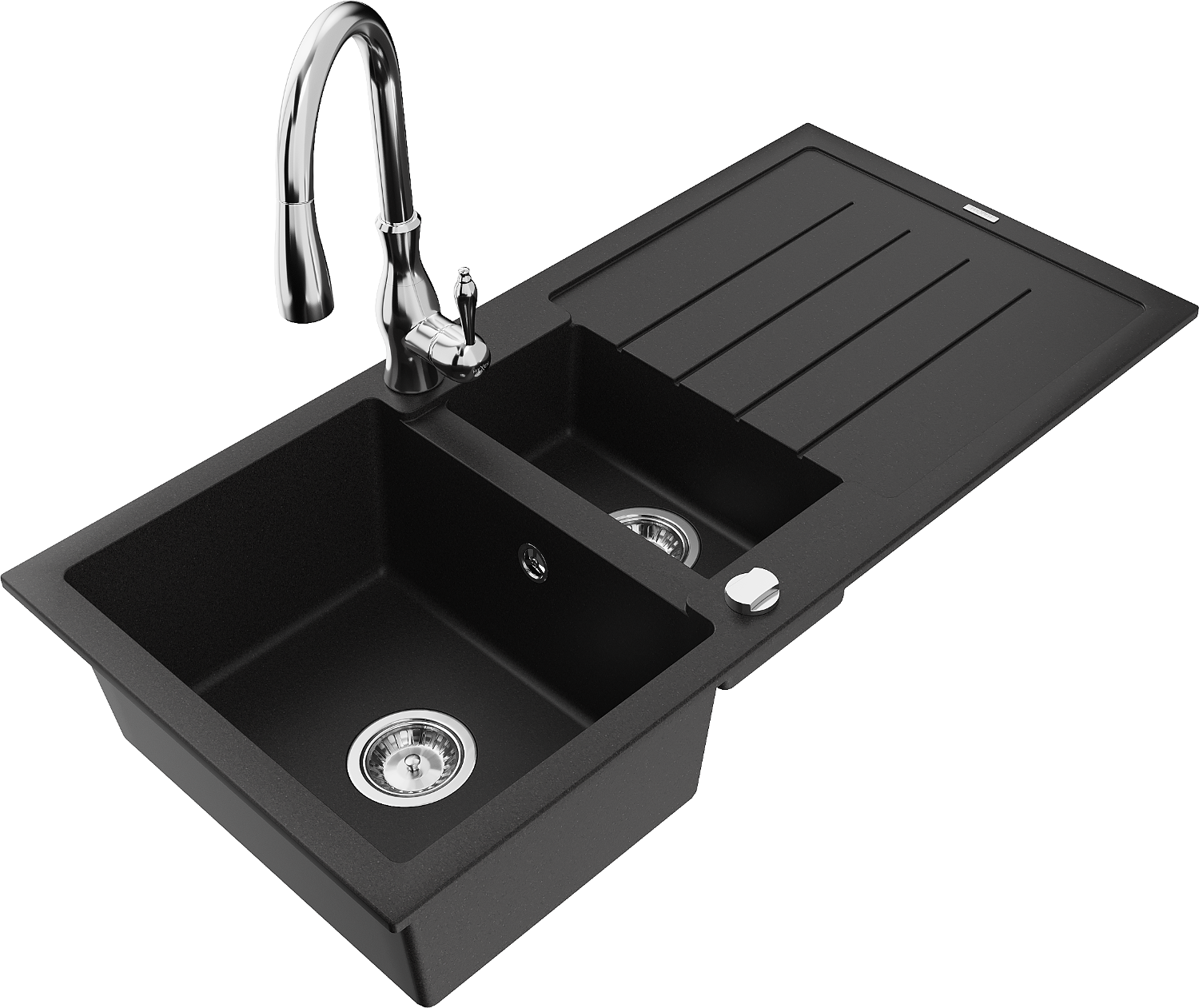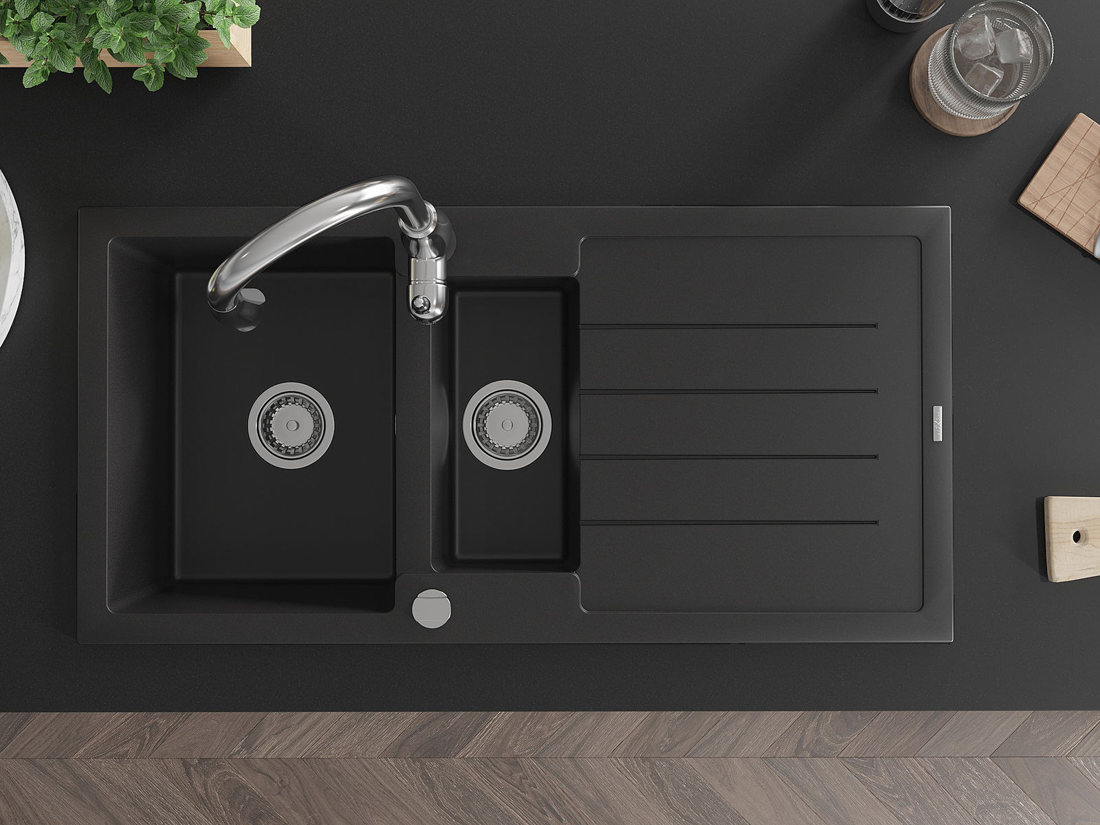 Mexen Andres lavello in granito 1,5 vasca con scolapiatti e rubinetto da cucina Savita, nero - 6515-77-672601-00