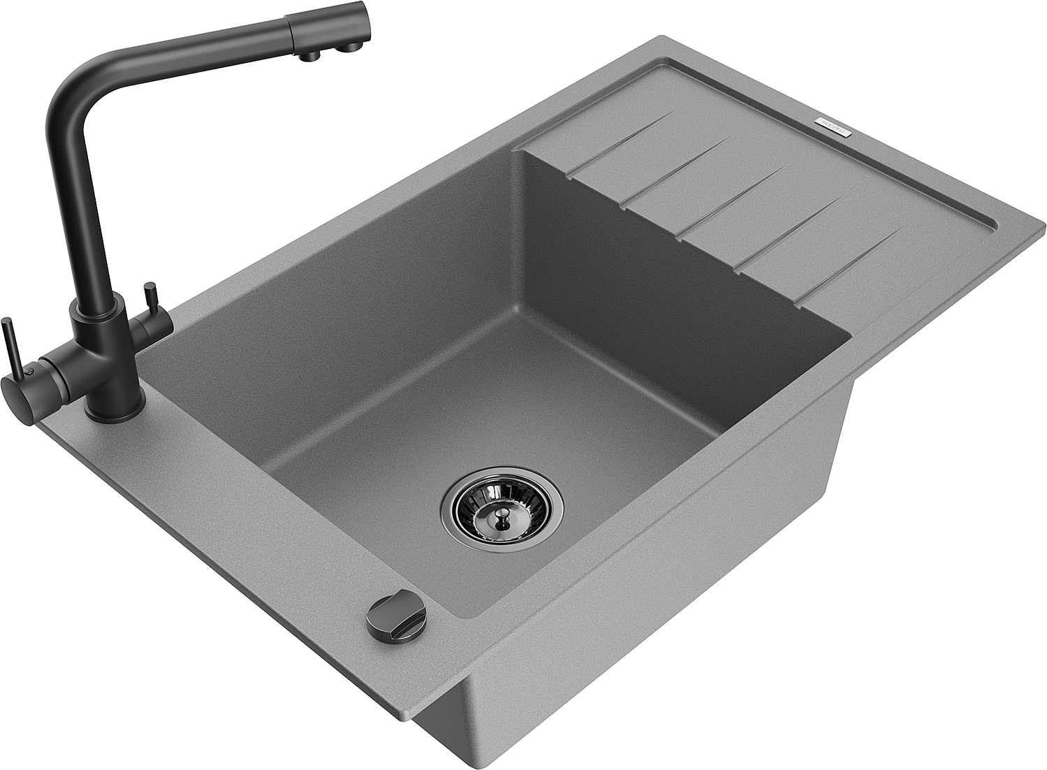 Mexen Elias lavello in granito 1-vasca con scolapiatti e miscelatore da cucina Duero, grigio - 6511-71-671600-70-B