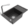 Mexen Elias lavello in granito a 1 vasca con scolapiatti e rubinetto da cucina Duero, nero/argento metallizzato