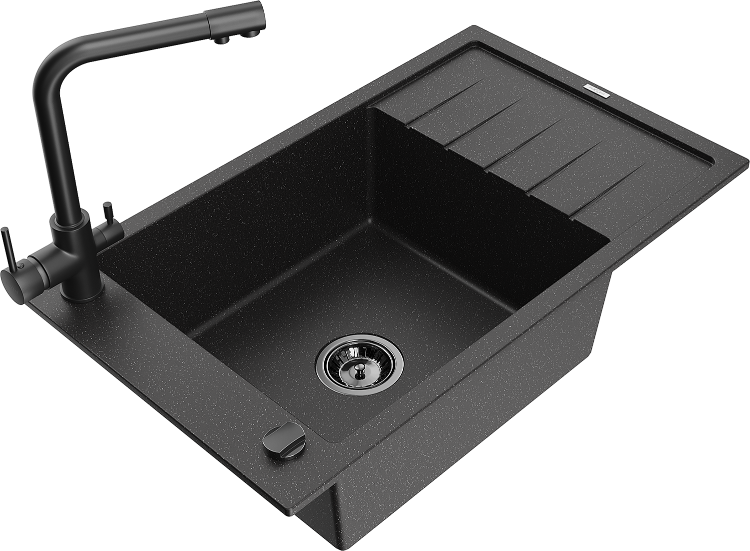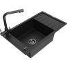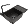 Mexen Elias lavello in granito a 1 vasca con scolapiatti e rubinetto da cucina Duero, nero/argento metallizzato