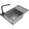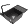 Mexen Elias lavello da cucina in granito a 1 vasca con sgocciolatoio e rubinetto Duero, nero/metallico argento