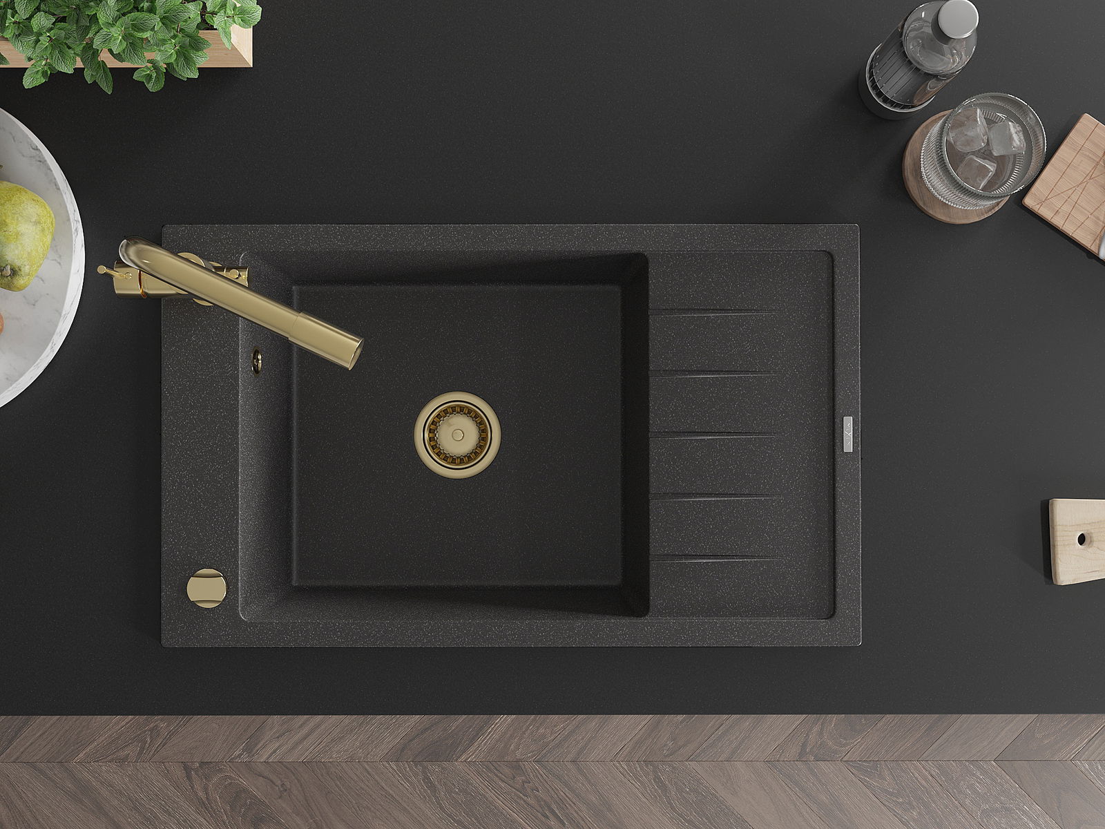 Il lavello è realizzato in granito di alta qualità. Rappresenta un complemento elegante e, soprattutto, pratico per ogni cucina, indipendentemente dal suo stile. L'alta qualità e la durata del granito garantiscono un utilizzo che dura per molti anni.