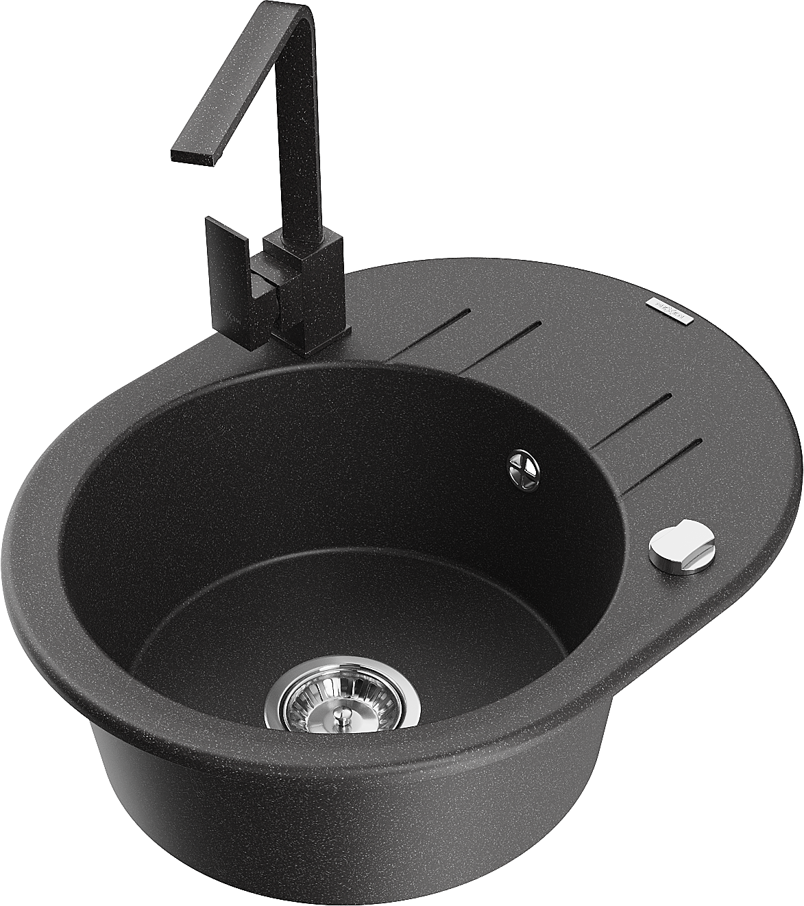 Mexen Kevin lavello in granito a 1 vasca con scolatoio e rubinetto da cucina Rita, nero punteggiato - 6517-76-670300-76