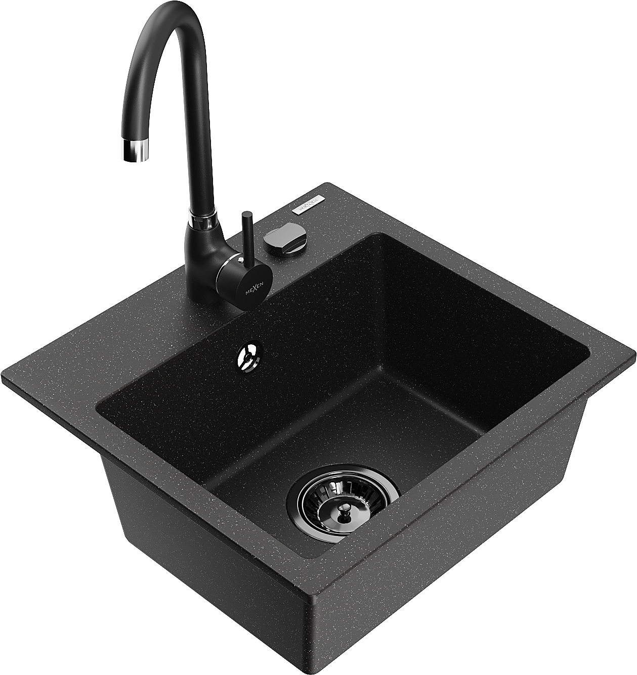 Mexen Milo lavello da cucina in granito a 1 vasca con rubinetto Telma, nero/argento - 6505-73-670200-70-B