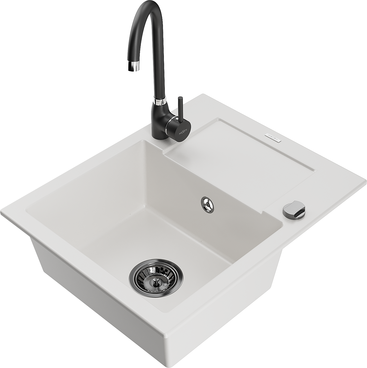 Mexen Enzo lavello da cucina in granito a 1 vasca con scolapiatti e rubinetto da cucina Telma, bianco - 6506-20-670200-70