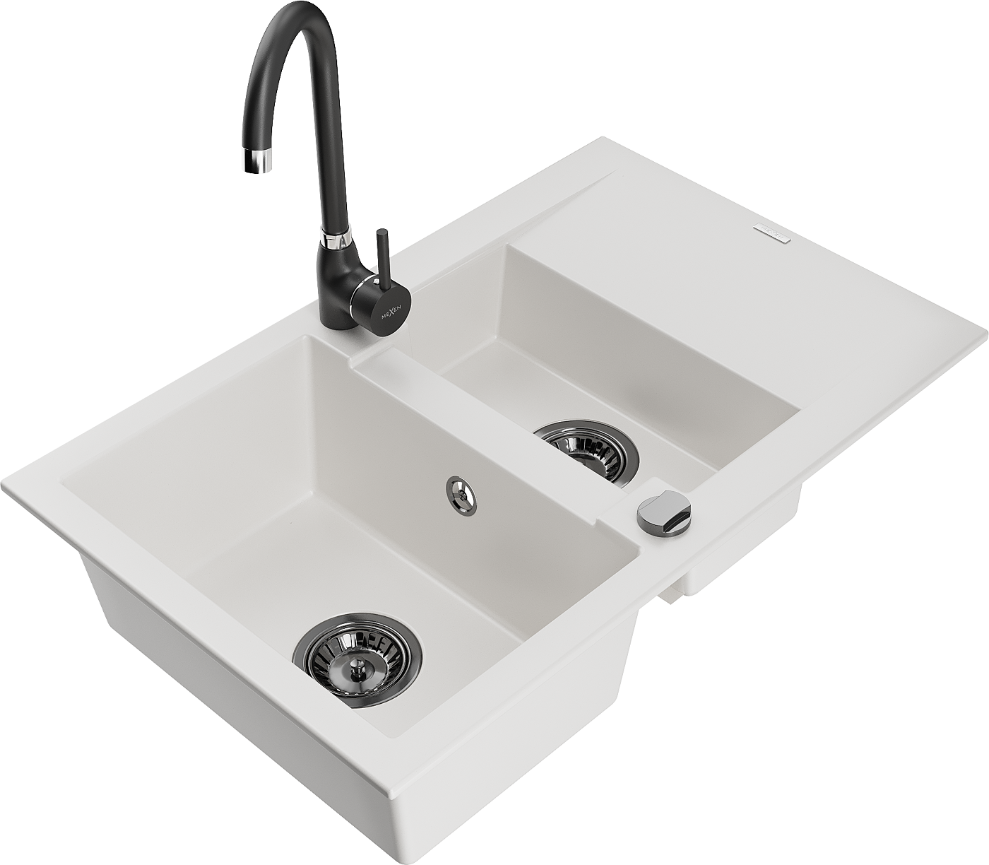 Mexen Gaspar lavello in granito 1,5 vasche con scolapiatti e rubinetto cucina Telma, bianco - 6507-20-670200-70
