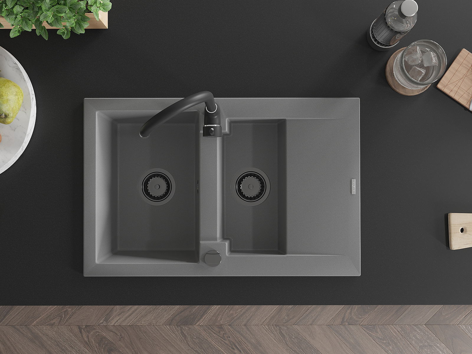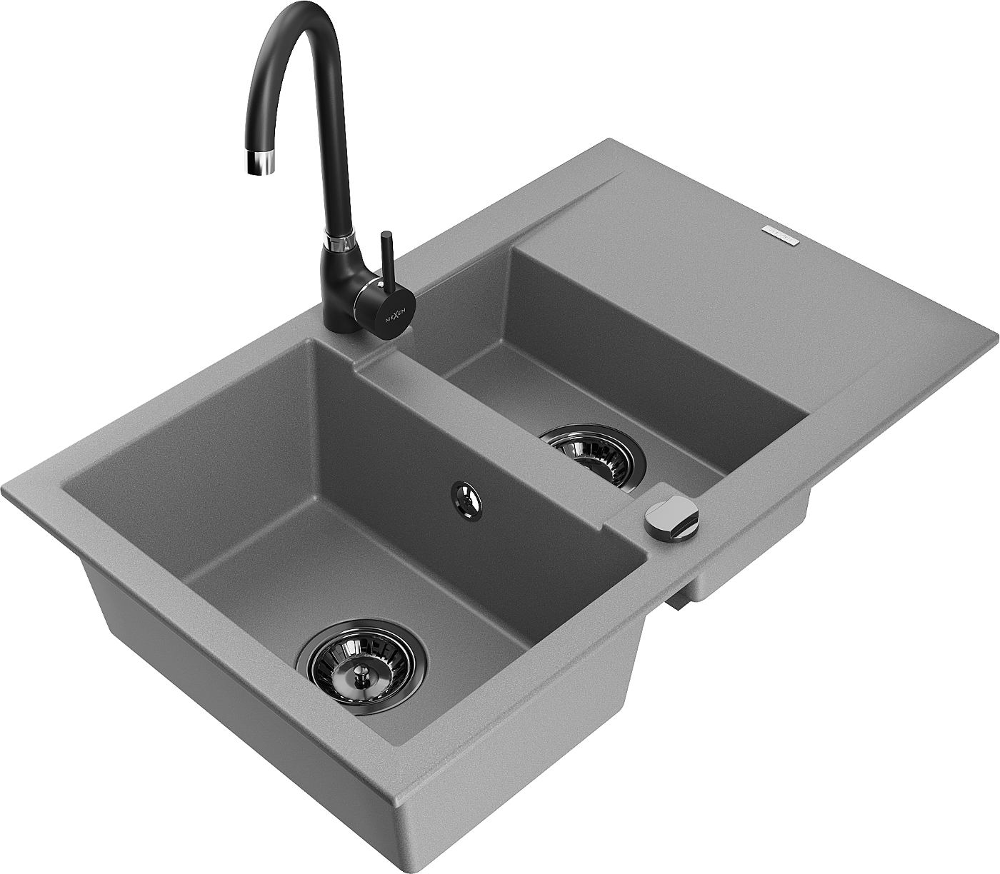 Mexen Gaspar lavello in granito a 1,5 vasche con scolapiatti e rubinetto da cucina Telma, grigio - 6507-71-670200-70-B