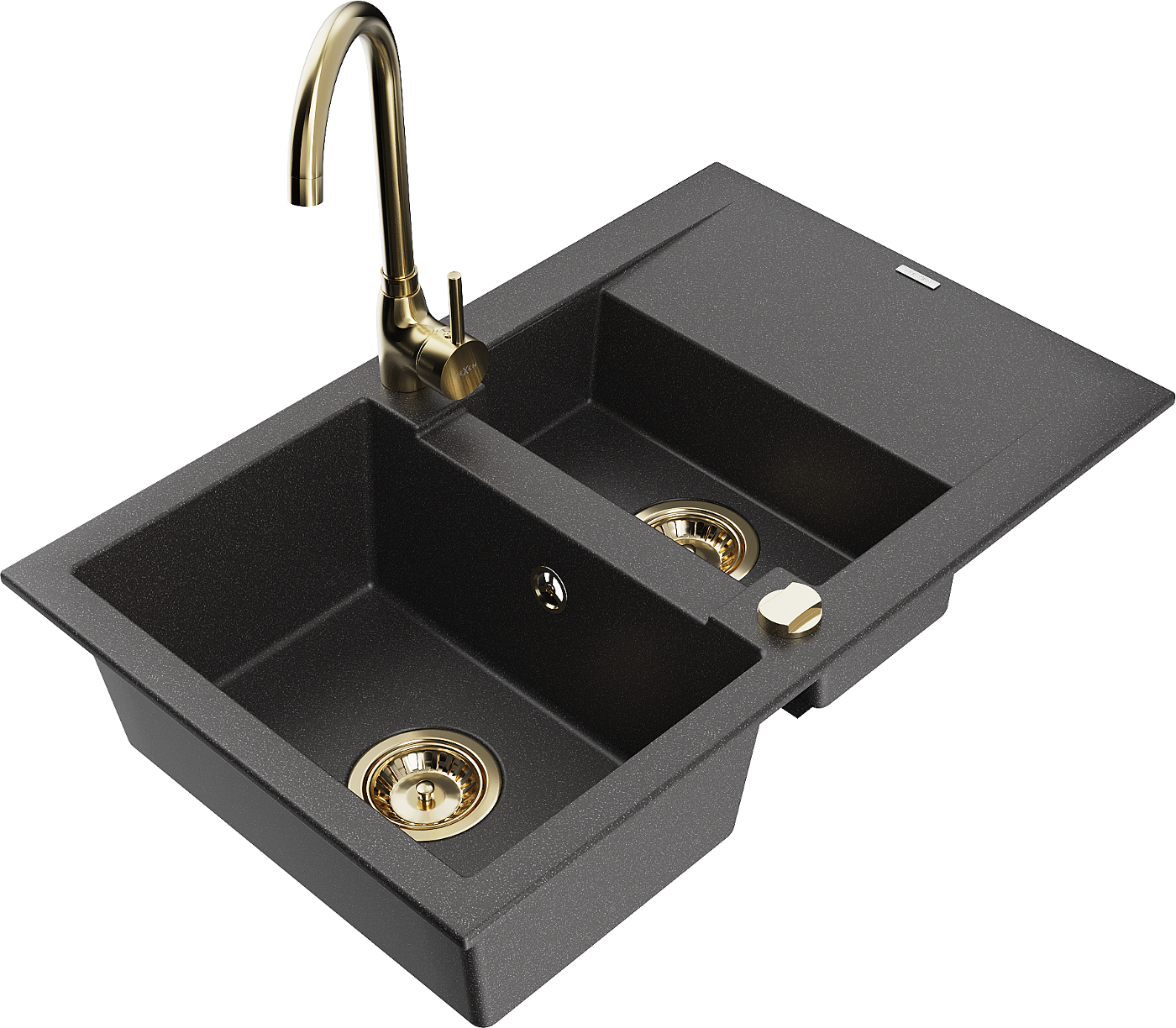 Mexen Gaspar lavello in granito 1,5 vasche con sgocciolatoio e rubinetto da cucina Telma, nero maculato - 6507-76-670200-50