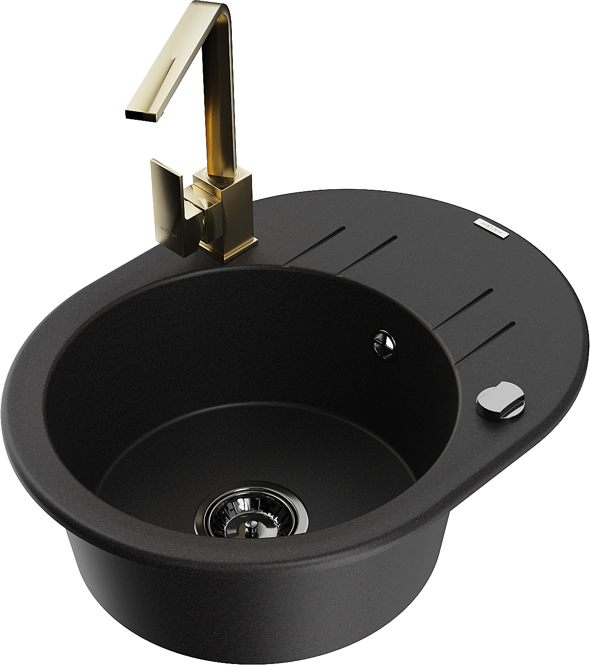Mexen Kevin lavello da cucina in granito 1-vasca con scolapiatti e rubinetto da cucina Rita, nero - 6517-77-670300-50-B