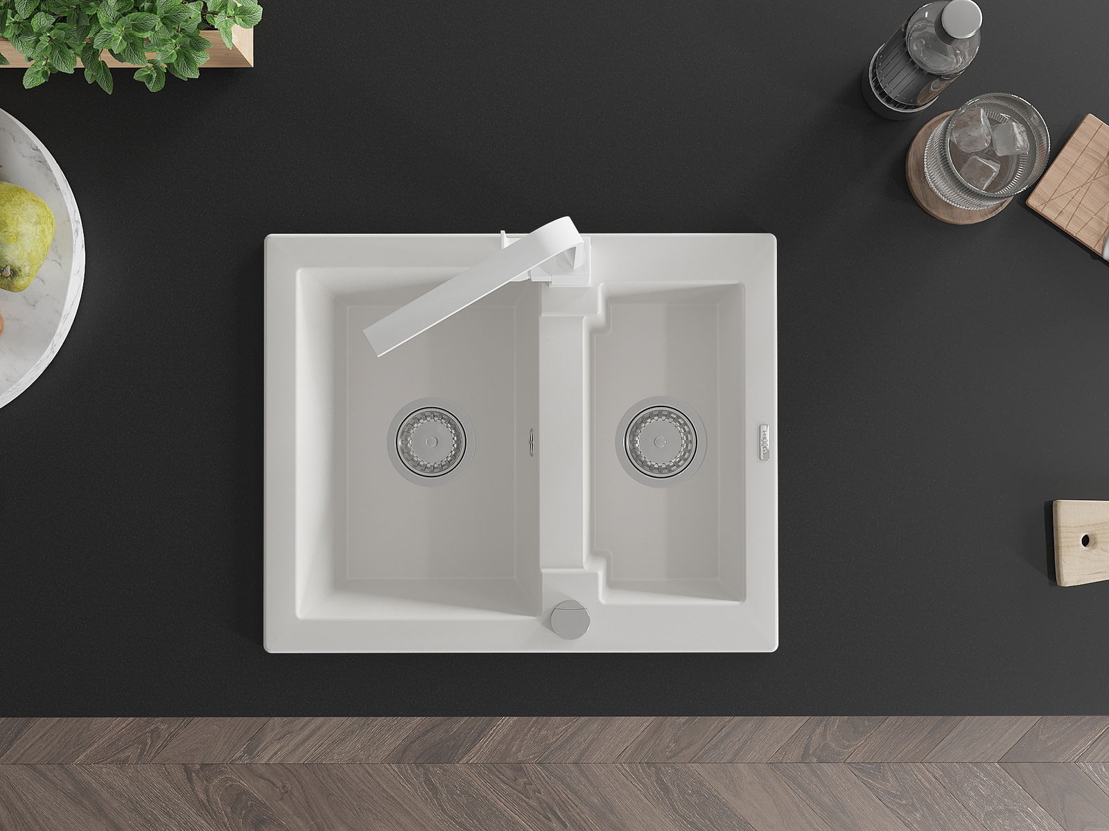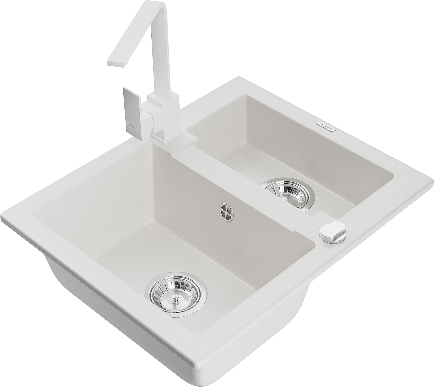Mexen Carlos lavello in granito 1,5 vasca con miscelatore cucina Rita, bianco - 6518-20-670300-20