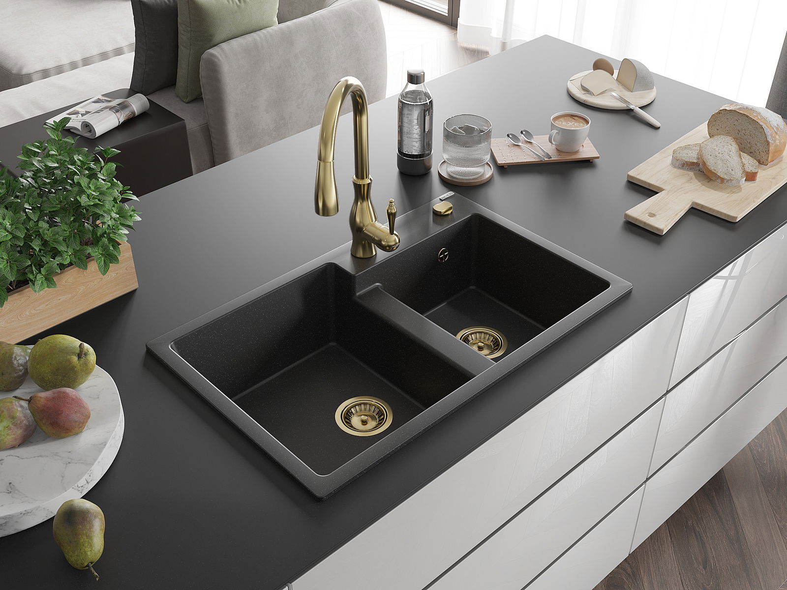 Il lavello è realizzato in granito di alta qualità. Rappresenta un complemento elegante e, soprattutto, pratico per ogni cucina, indipendentemente dal suo stile. L'alta qualità e la durata del granito garantiscono un utilizzo che dura per molti anni.