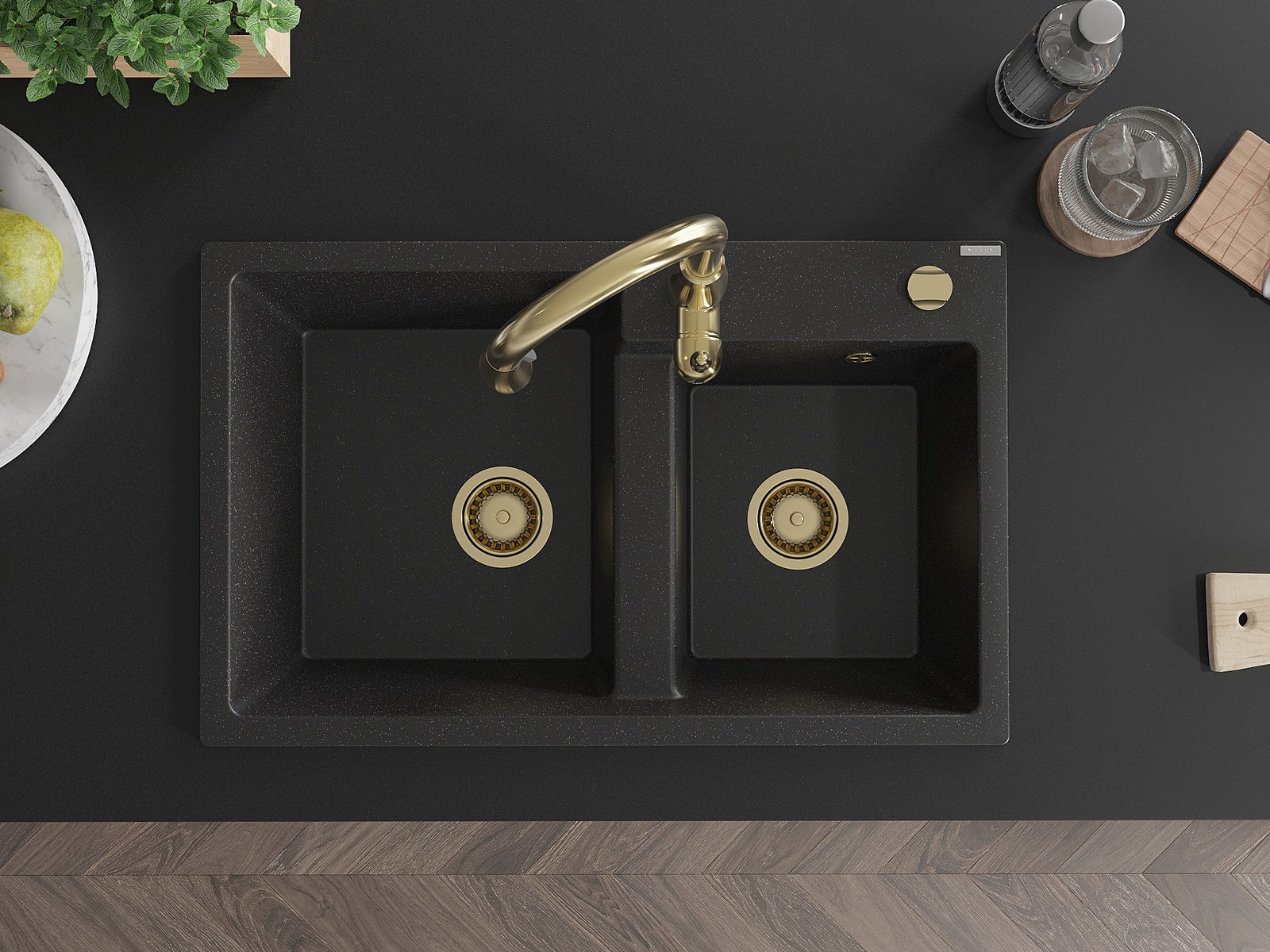 Il lavello ha un foro fresato di 35 mm di diametro da sfondare autonomamente. Può essere utilizzato, tra l'altro, per montare un dosatore di liquidi, che eliminerà la presenza di bottiglie di plastica in cucina e conferirà un tocco di eleganza.