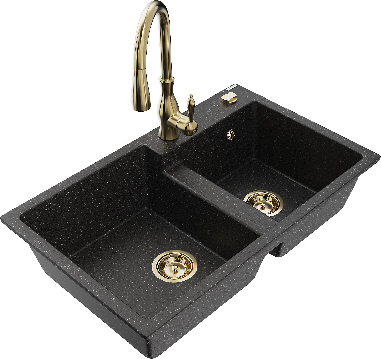Mexen Tomas lavello in granito a 2 vasche con miscelatore da cucina Savita, nero/argento metallizzato - 6516-73-672601-50