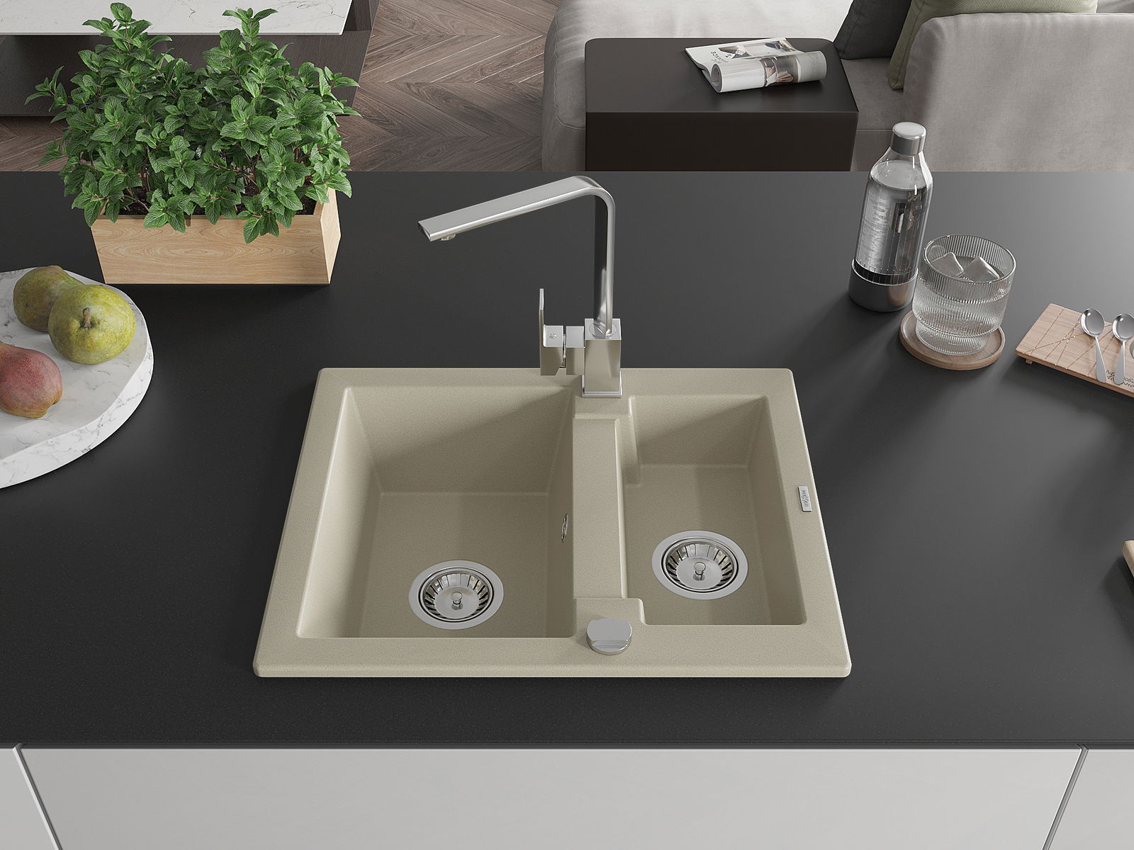 Il lavello è realizzato in granito di alta qualità. Rappresenta un complemento elegante e, soprattutto, pratico per ogni cucina, indipendentemente dal suo stile. L'alta qualità e la durata del granito garantiscono un utilizzo che dura per molti anni.