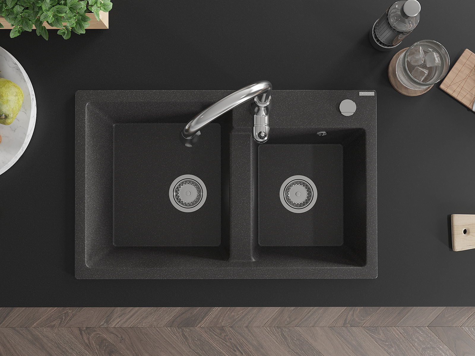 Mexen Tomas lavello in granito a 2 vasche con miscelatore da cucina Savita, nero maculato - 6516-76-672601-00