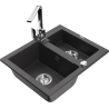 Mexen Carlos lavello da cucina in granito con 1,5 vasche con rubinetto da cucina Rita, nero/metallo argento - 6518-73-670300-00