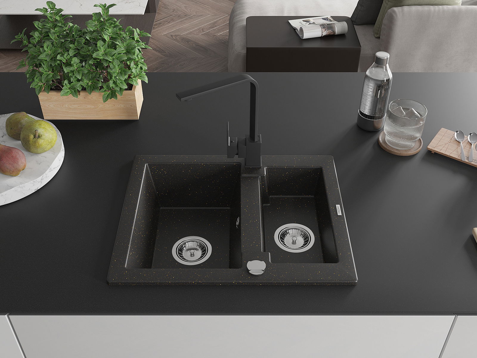 Il lavello è realizzato in granito di alta qualità. Rappresenta un complemento elegante e, soprattutto, pratico per ogni cucina, indipendentemente dal suo stile. L'alta qualità e la durata del granito garantiscono un utilizzo che dura per molti anni.