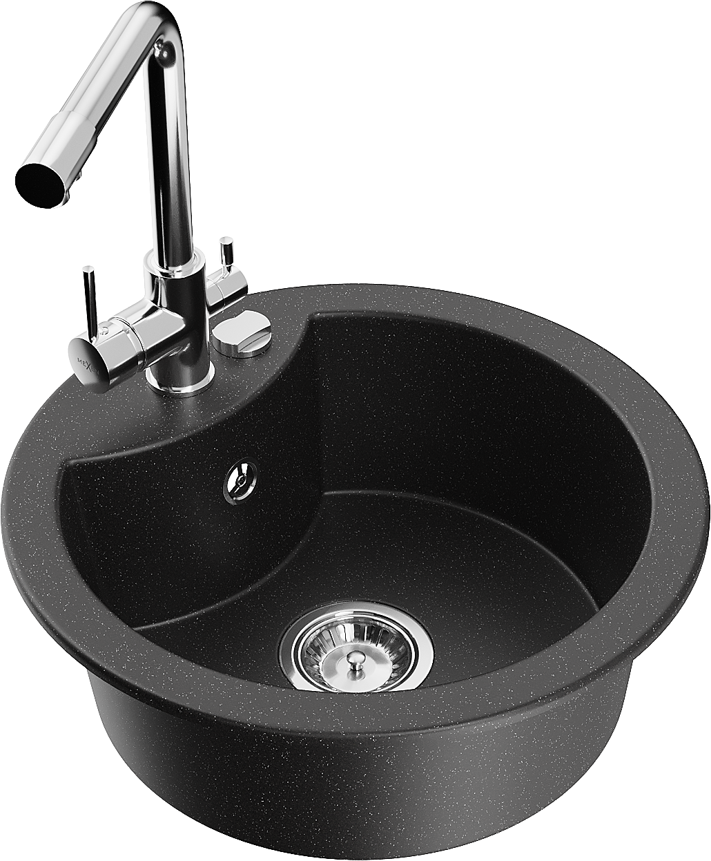 Mexen Diego lavello in granito a 1 vasca con rubinetto da cucina Duero, nero/argento metallizzato - 6512-73-671600-00