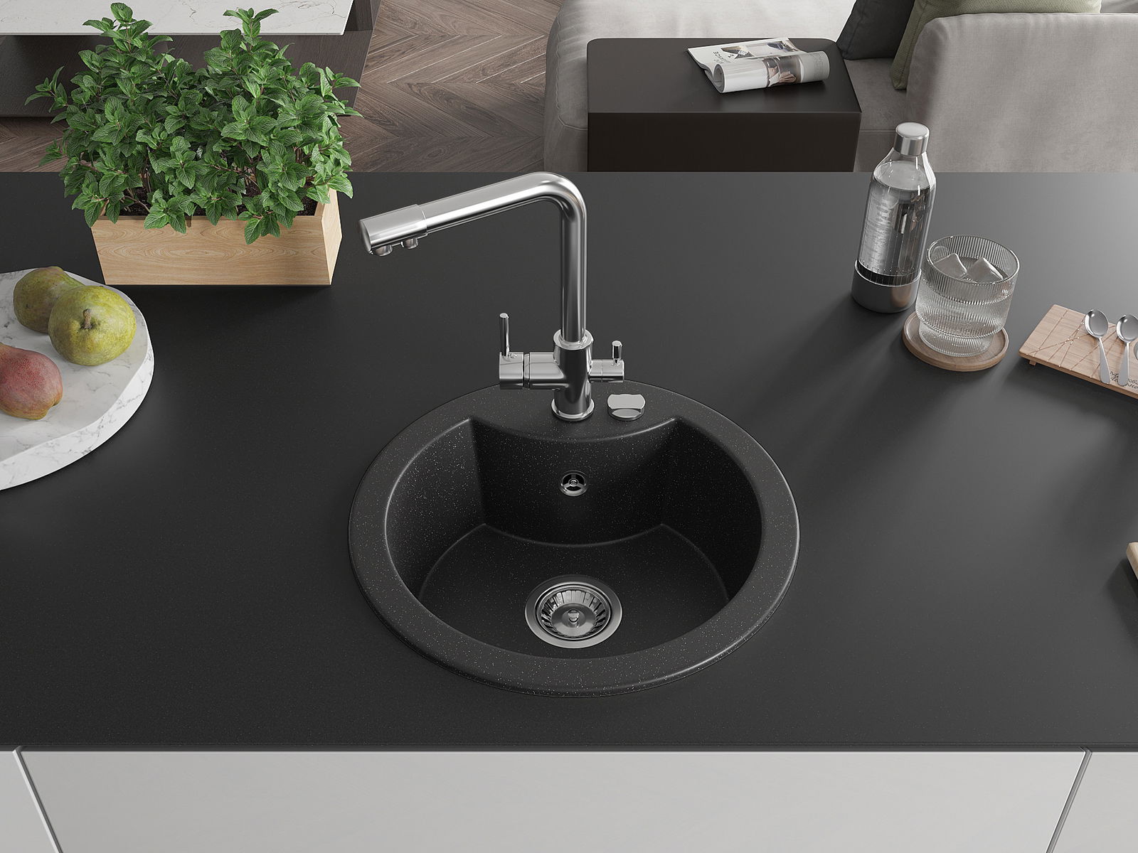 Il lavello è realizzato in granito di alta qualità. Rappresenta un complemento elegante e, soprattutto, pratico per ogni cucina, indipendentemente dal suo stile. L'alta qualità e la durata del granito garantiscono un utilizzo che dura per molti anni.
