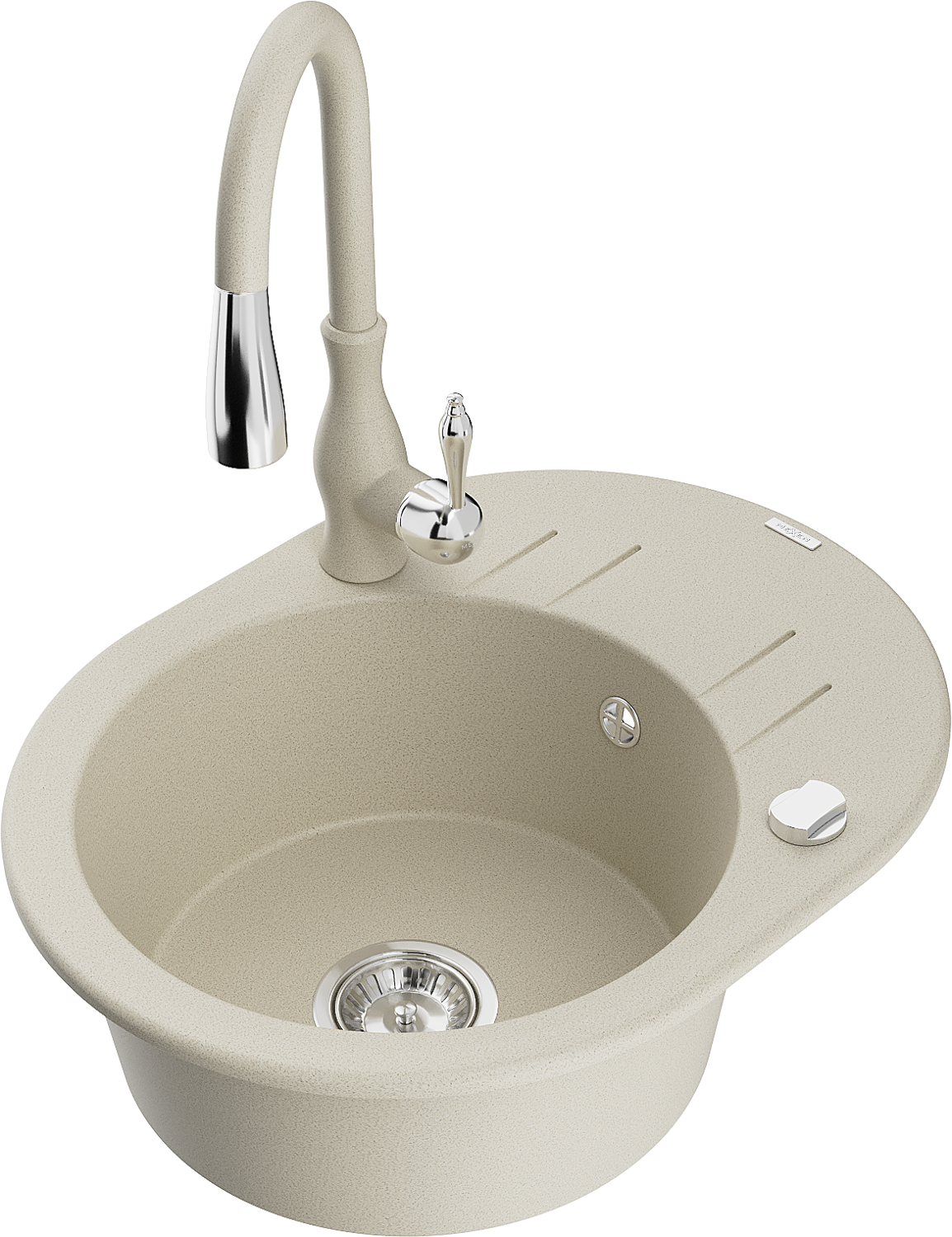 Mexen Kevin lavello in granito a 1 vasca con gocciolatoio e rubinetto da cucina Savita, beige - 6517-69-672601-69
