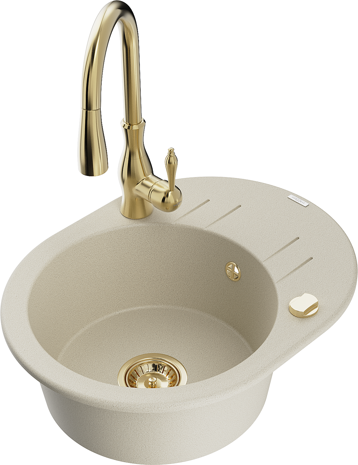 Mexen Kevin lavello in granito a 1 vasca con gocciolatoio e rubinetto da cucina Savita, beige - 6517-69-672601-50