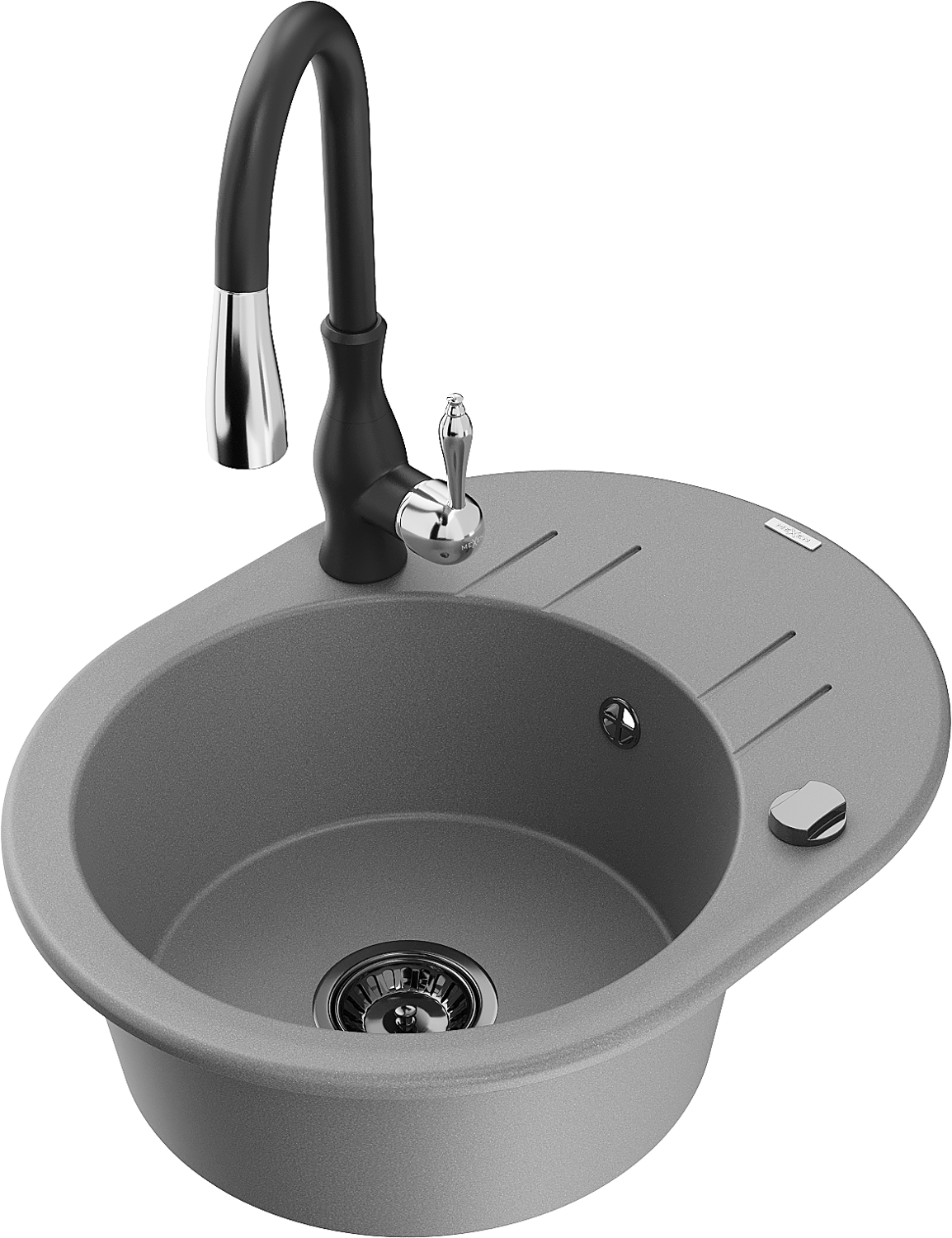 Mexen Kevin lavello in granito a 1 vasca con sgocciolatoio e rubinetto da cucina Savita, grigio - 6517-71-672601-70-B