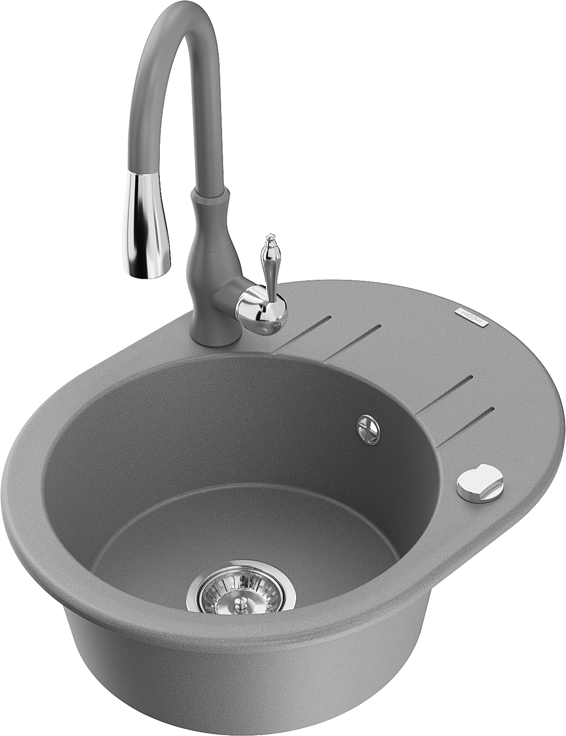 Mexen Kevin lavello in granito 1-vasca con scolapiatti e rubinetto da cucina Savita, grigio - 6517-71-672601-71