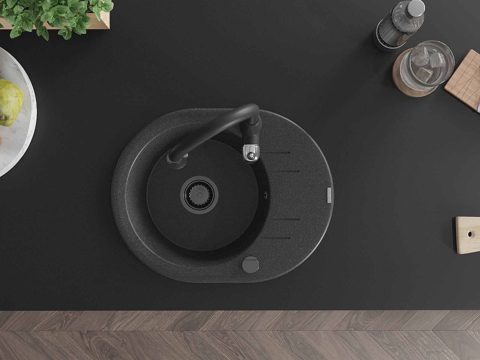 Il lavello è realizzato in granito di alta qualità. Rappresenta un complemento elegante e, soprattutto, pratico per ogni cucina, indipendentemente dal suo stile. L'alta qualità e la durata del granito garantiscono un utilizzo che dura per molti anni.