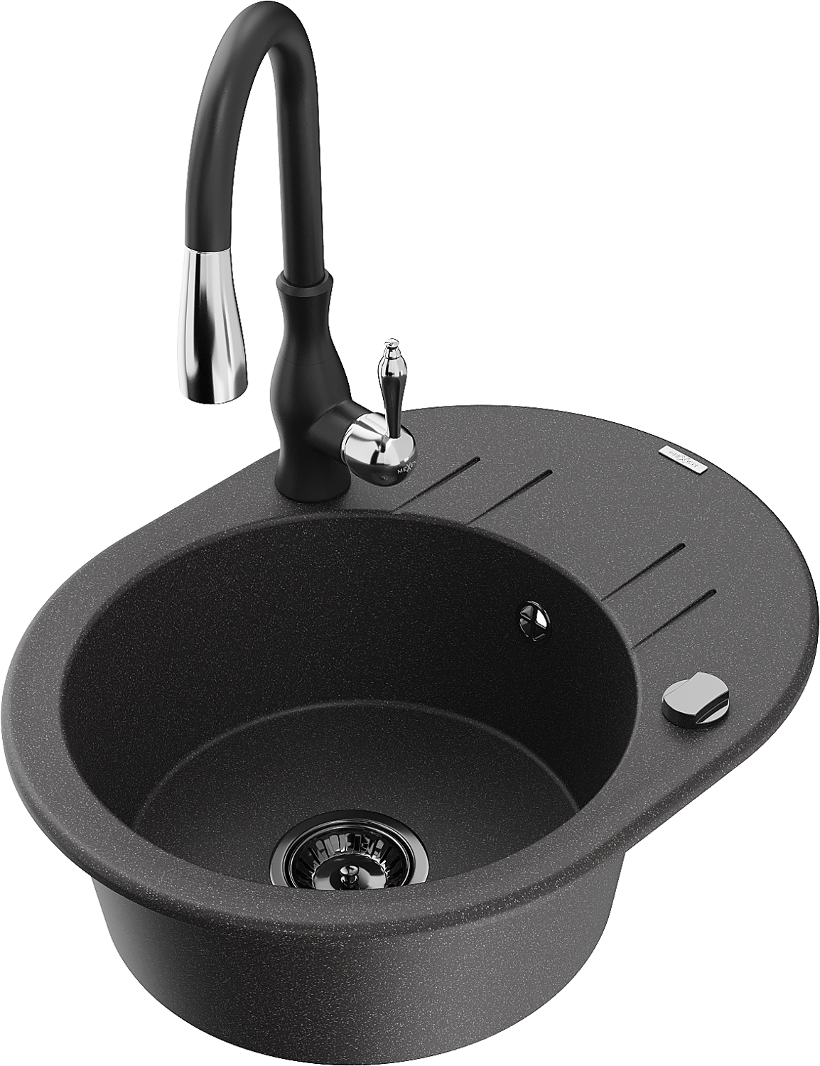 Mexen Kevin lavello in granito a 1 vasca con scolapiatti e miscelatore da cucina Savita, nero punteggiato - 6517-76-672601-70-B