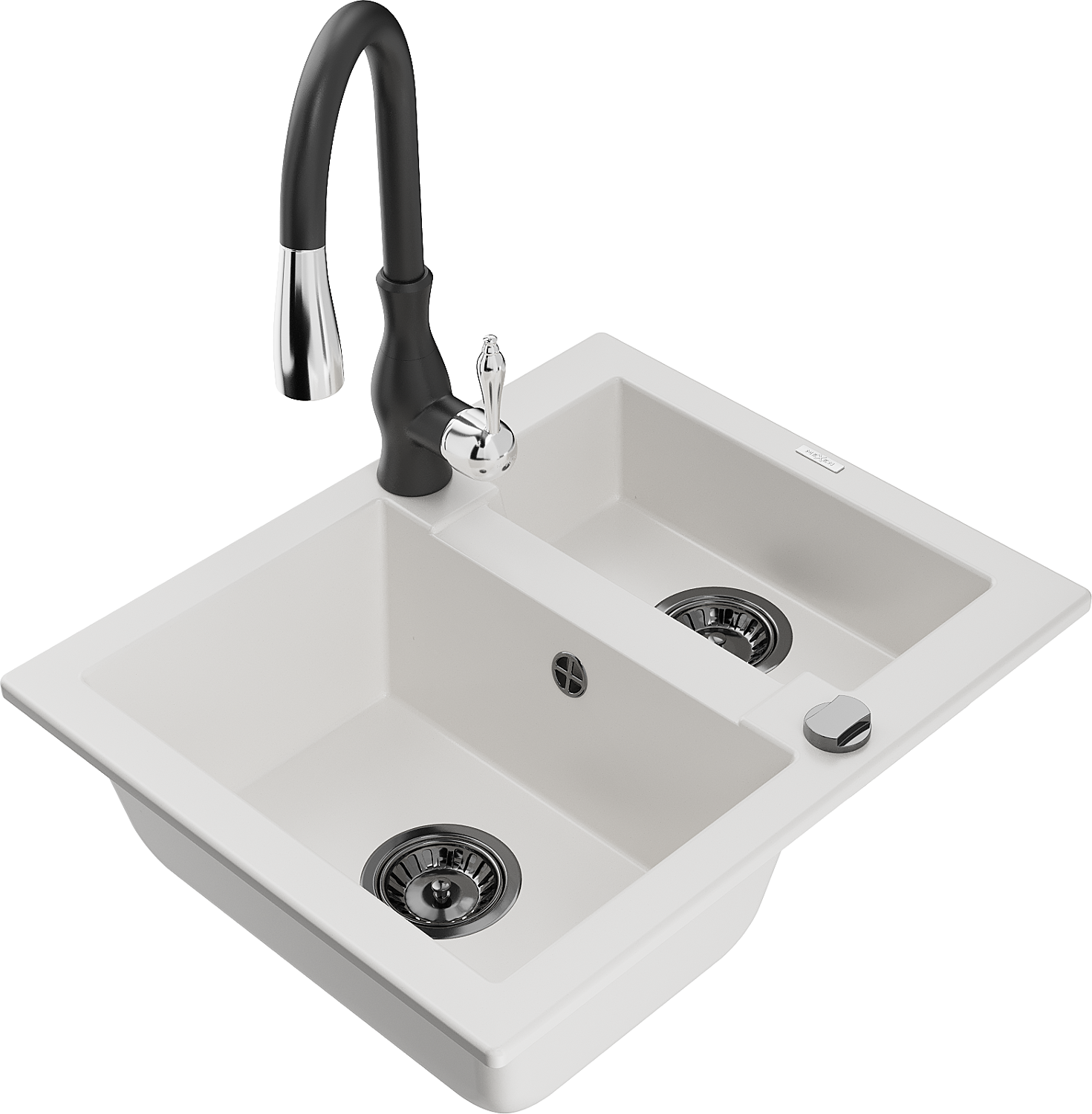 Mexen Carlos lavello in granito 1,5 vasca con rubinetto cucina Savita, bianco - 6518-20-672601-70