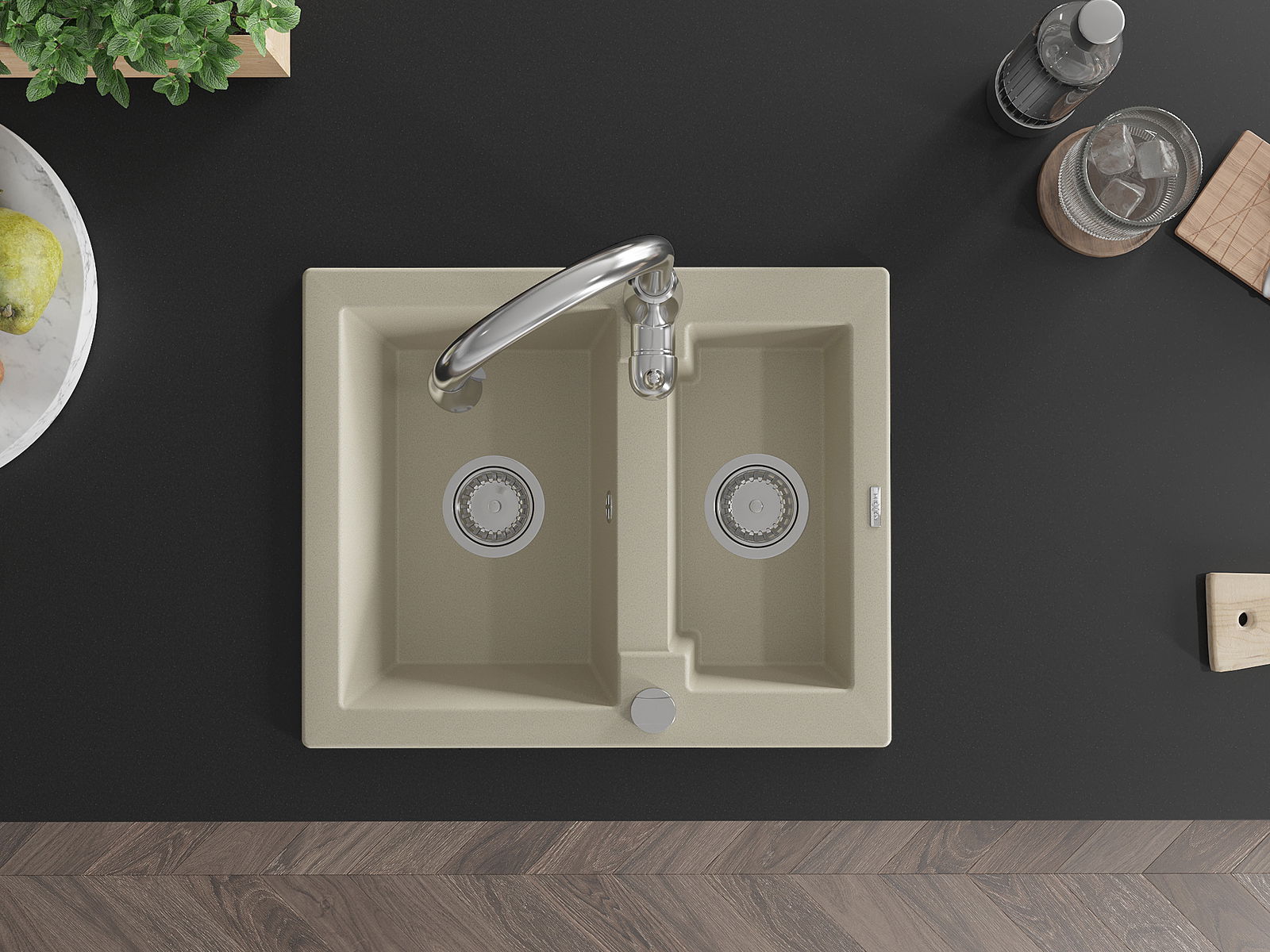 Mexen Carlos lavello in granito 1,5 vasche con rubinetto da cucina Savita, beige - 6518-69-672601-00