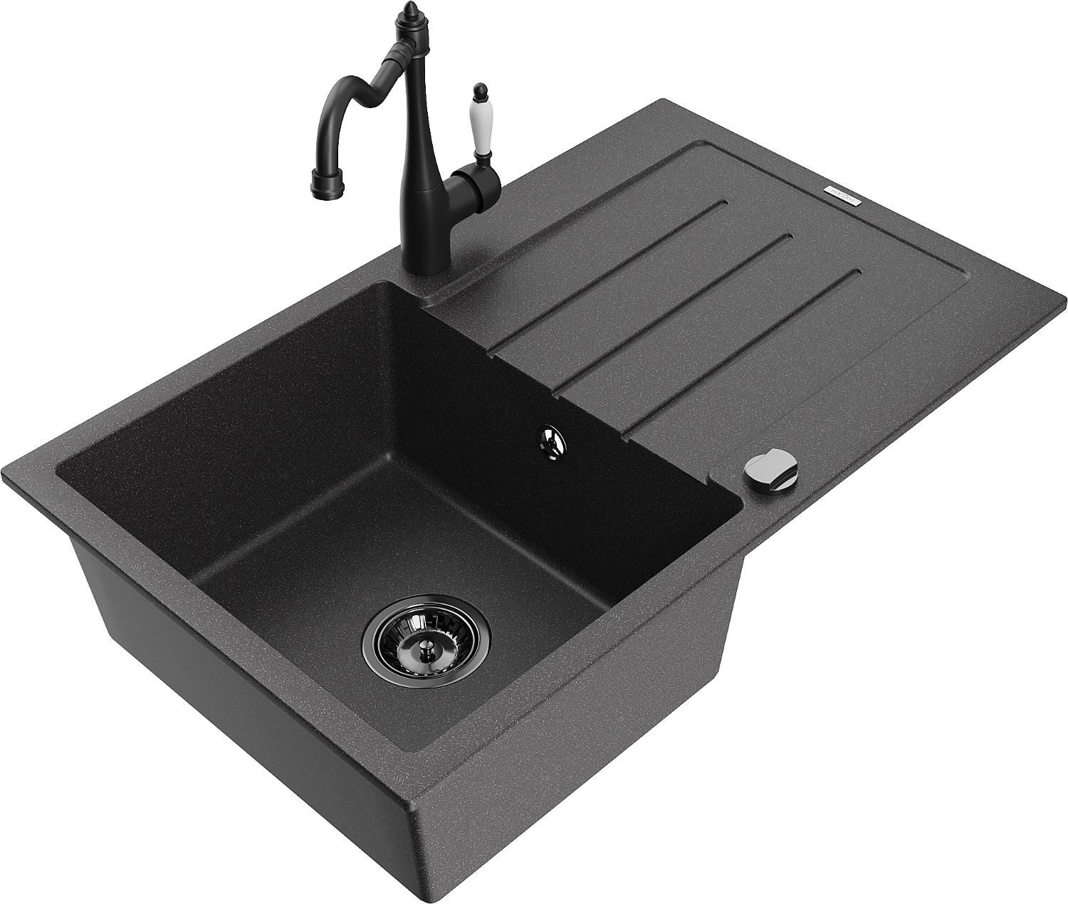 Mexen Bruno lavello in granito a 1 vasca con scolapiatti e rubinetto da cucina Carla, nero macchiato - 6513-76-670700-70-B