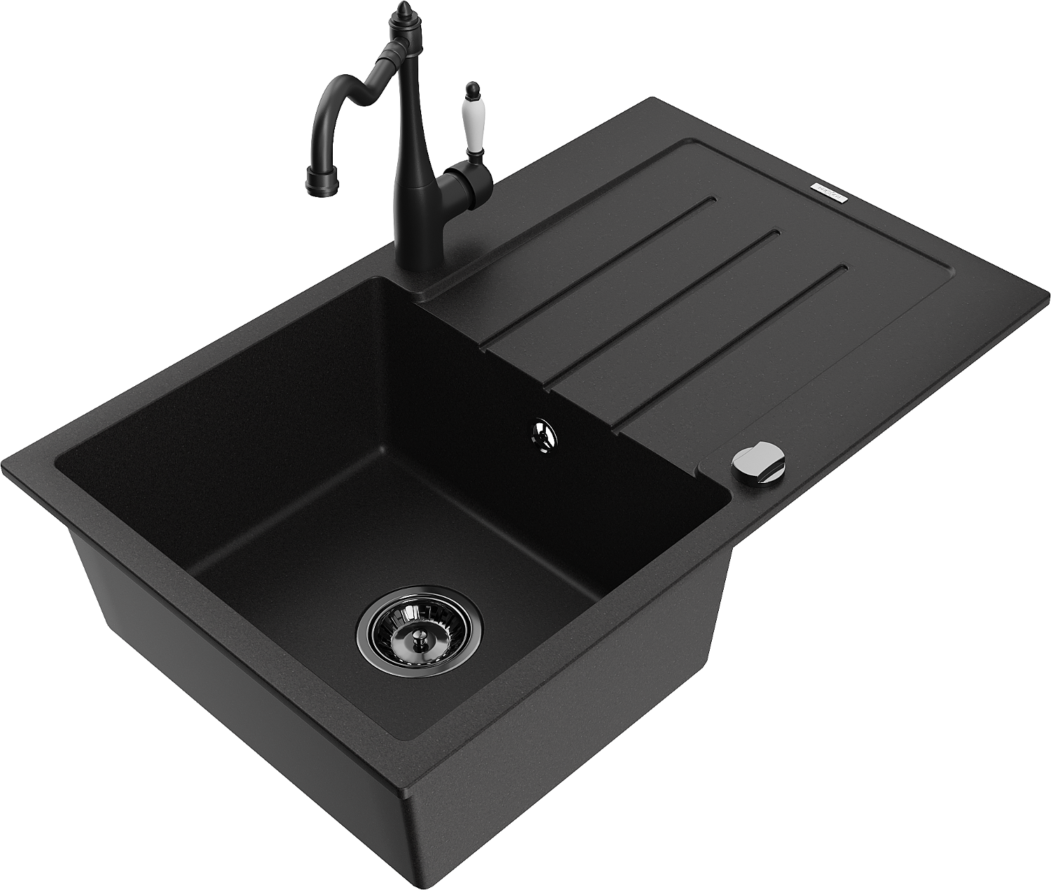 Mexen Bruno lavello in granito 1-vasca con scolapiatti e rubinetto da cucina Carla, nero - 6513-77-670700-70-B