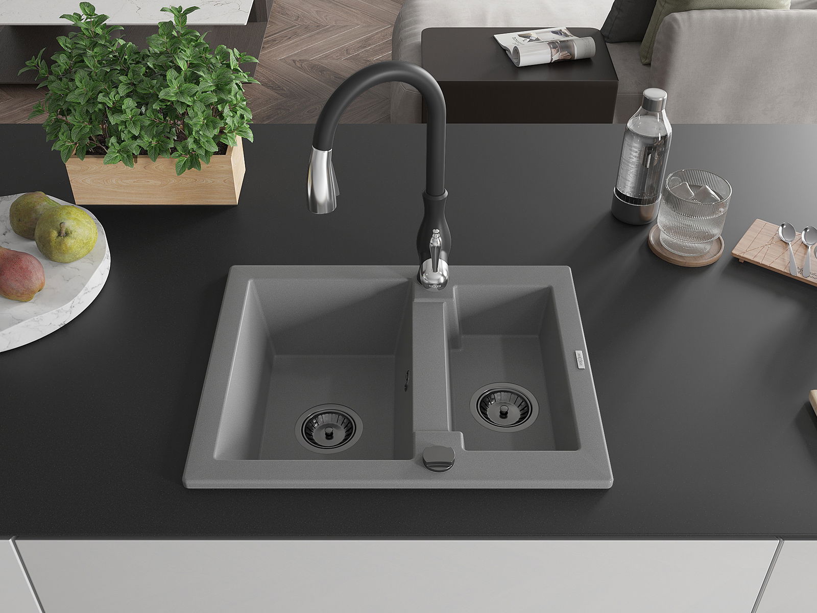 Il lavello è realizzato in granito di alta qualità. Rappresenta un complemento elegante e, soprattutto, pratico per ogni cucina, indipendentemente dal suo stile. L'alta qualità e la durata del granito garantiscono un utilizzo che dura per molti anni.
