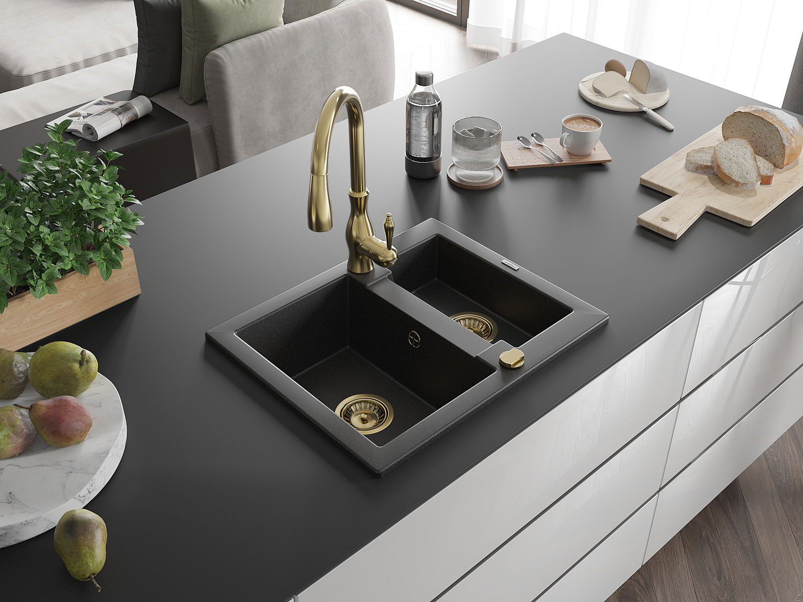 Il lavello è realizzato in granito di alta qualità. Rappresenta un complemento elegante e, soprattutto, pratico per ogni cucina, indipendentemente dal suo stile. L'alta qualità e la durata del granito garantiscono un utilizzo che dura per molti anni.