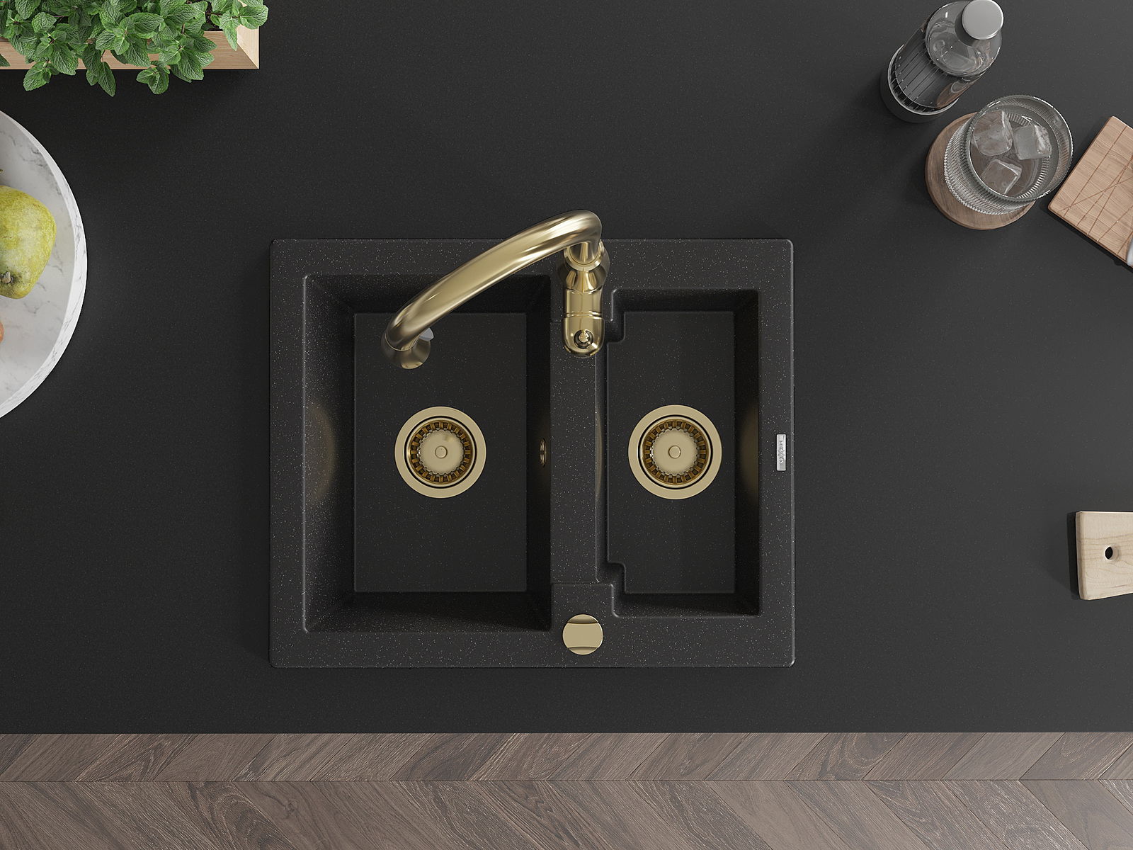 Mexen Carlos lavello in granito 1,5 vasca con rubinetto da cucina Savita, nero/metallo argento - 6518-73-672601-50