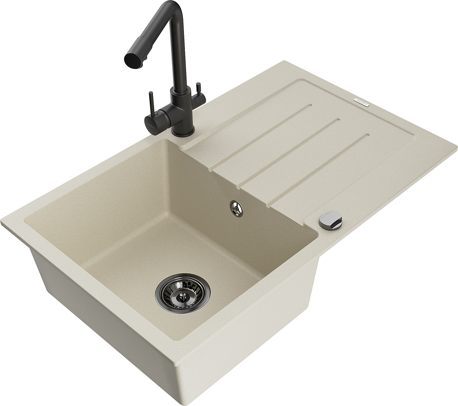 Mexen Bruno lavello in granito a 1 vasca con scolapiatti e rubinetto da cucina Duero, beige - 6513-69-671600-70