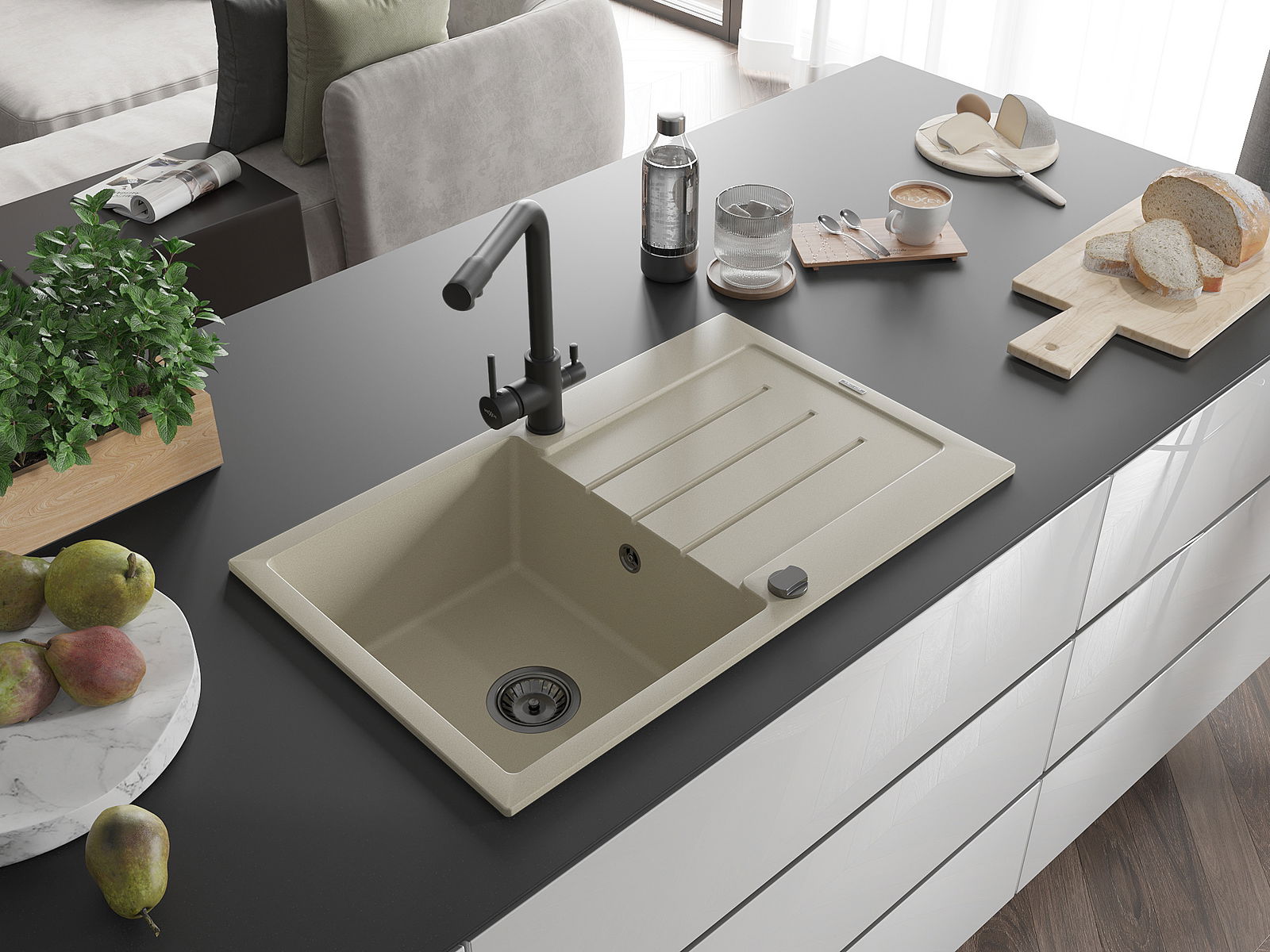Il lavello è realizzato in granito di alta qualità. Rappresenta un complemento elegante e, soprattutto, pratico per ogni cucina, indipendentemente dal suo stile. L'alta qualità e la durata del granito garantiscono un utilizzo che dura per molti anni.